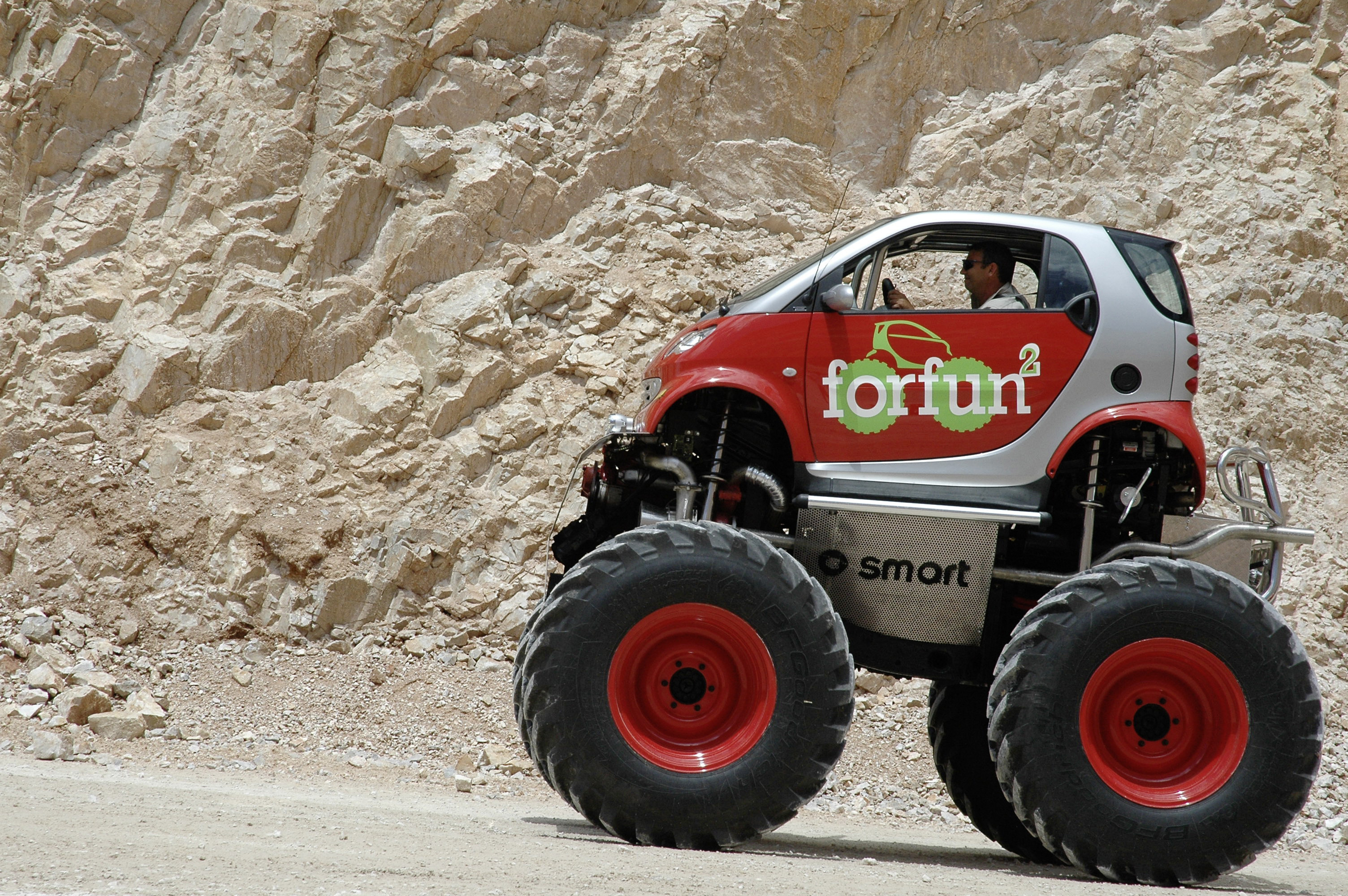 - Spektakuläre Kulisse: Fahrerprobung des smart city coupé 1998 in Amerika. Spectacular backdrop: Test driving the smart city coupe in 1998 in the USA.