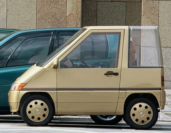 Die Idee ist radikal, die zu Beginn der 1970er-Jahre in den Köpfen der Entwickler von Mercedes-Benz reift: Das „Auto der Zukunft“, so ihre Überlegungen, muss alle bestehenden Vorstellungen von Automobilen hinterfragen und auf den Prüfstand stellen. Bereits die ersten Skizzen aus dem Jahr 1972 weisen einen neuen, zukunftsträchtigen Weg. Danach entsteht bei Mercedes-Benz das Konzept eines superkompakten Automobils mit zweieinhalb Meter Länge. Die Verantwortung für das Vorhaben trägt Johann Tomforde, damals bei Mercedes-Benz Studio-Ingenieur und Typenbegleiter für das Gebiet „Zukünftige Verkehrssysteme“.