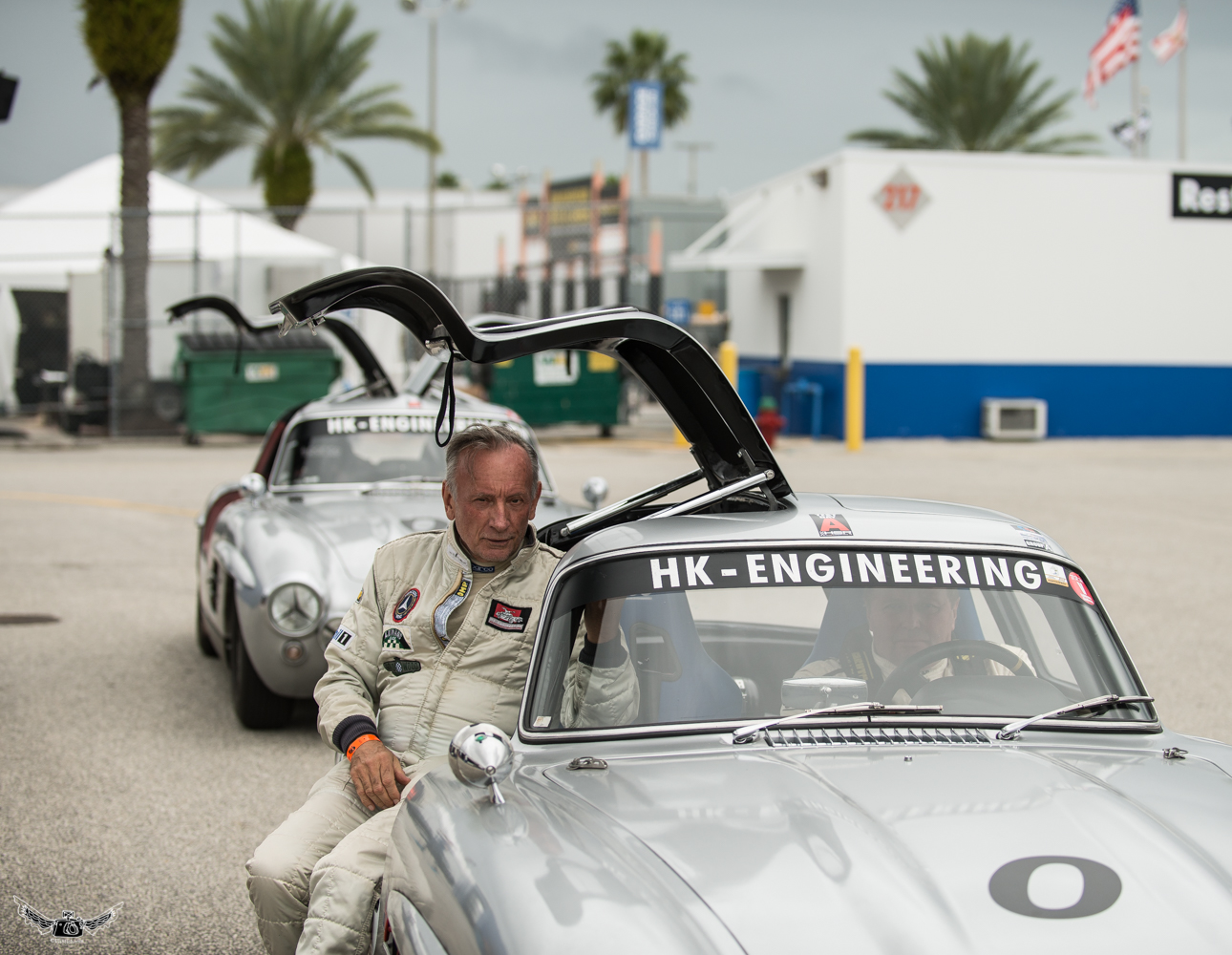 Ähnlich wie in Le Mans müssen die historischen Fahrzeuge aber nicht die 24 Stunden komplett absolvieren, sondern sind nach Baujahrsgruppen eingeteilt und fahren abwechselnd alle fünf Stunden für knapp eine Stunde inklusive eines Laufes in der Nacht.Erstmals sind zwei Mercedes-Benz Flügeltürer aus Deutschland bei dieser Veranstaltung vertreten. Der eine wird pilotiert von Hans Kleissl und Jochen Mass. Jochen Mass ist gefragteste Star in Daytona, die meisten kennen ihn noch aus den Rennen der siebziger und achtziger Jahre. Beim zweiten Mercedes-Benz 300 SL sitzt Guido Haarmann am Steuer.