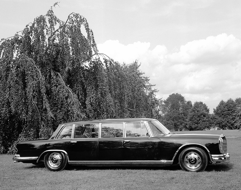 Bereits der Typ 300, im Volksmund „Adenauer-Mercedes“ genannt, wird 1960 als Sonderanfertigung in drei Exemplaren auf das Pullman-Maß gebracht. Und nach der Baureihe W 100 gibt es in den folgenden Jahren Pullman-Versionen der S-Klasse Baureihen 109 und 126 (Sonderanfertigungen) sowie 140 und 220 (beide serienmäßig).