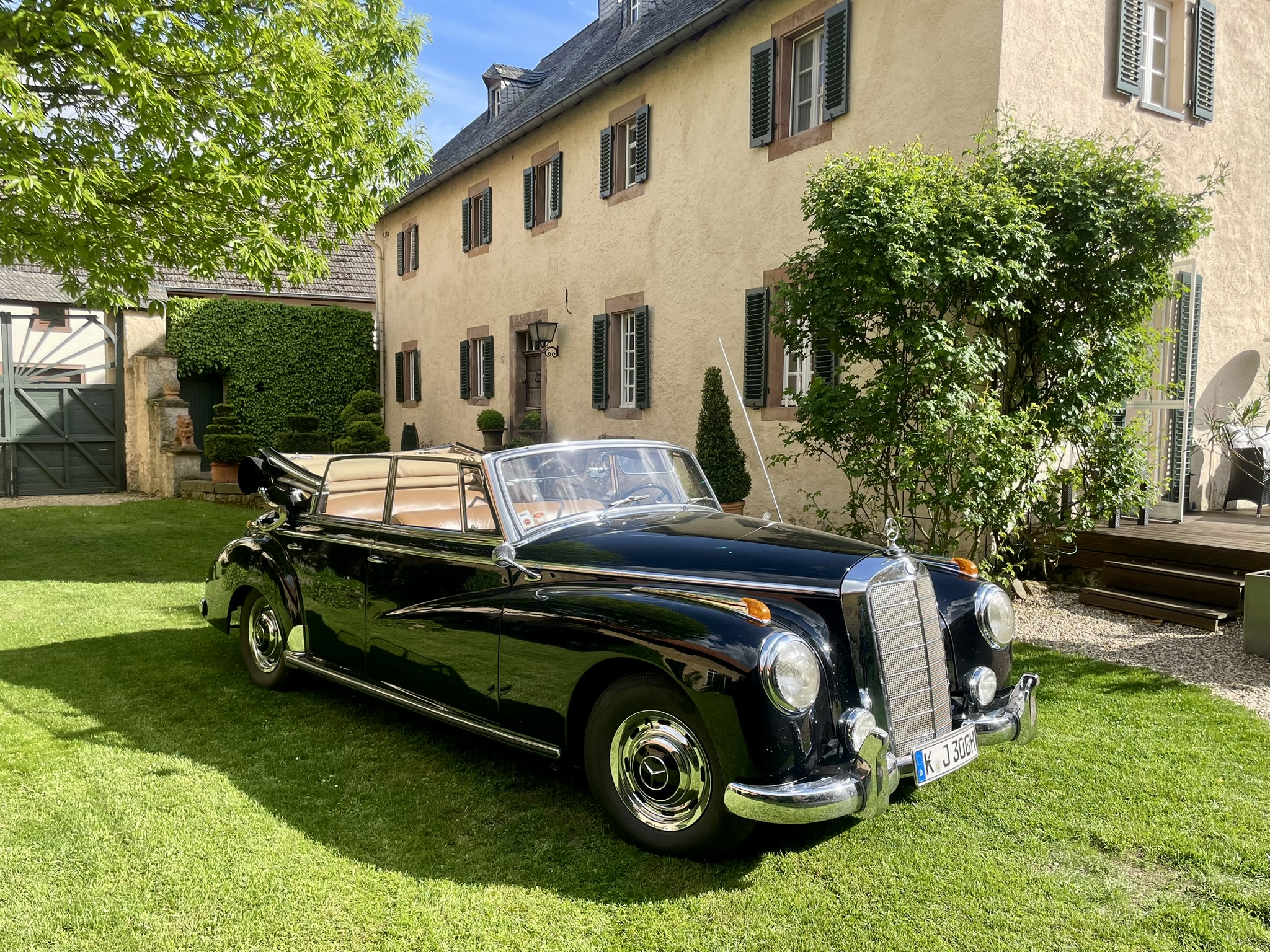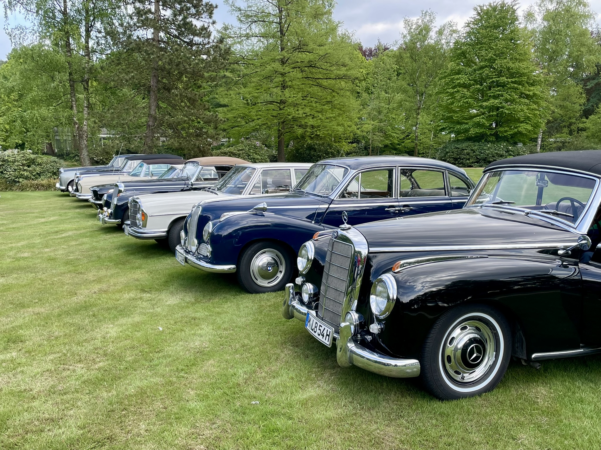 „Huis Doorn“ schien uns ein geeignetes Ziel für unsere jährliche Maiausfahrt, die nun schon zum 11. Mal stattfand. Unter unseren 12 Autos waren 6 Oldtimer von Mercedes – die Marke war also wieder einmal sehr gut vertreten: ein 220 Cabriolet A Bj. 1952 (W187), ein 300b Cabriolet D Bj. 1954 (W187 III), ein 300c Cabriolet D Bj. 1955/56 (W187 IV), ein 280 SE Coupé Bj. 1968 (W111), ein 280 SE Cabriolet Bj. 1968 (W111) und eine Limousine 280 SE 3.5 Bj. 1971 (W108).