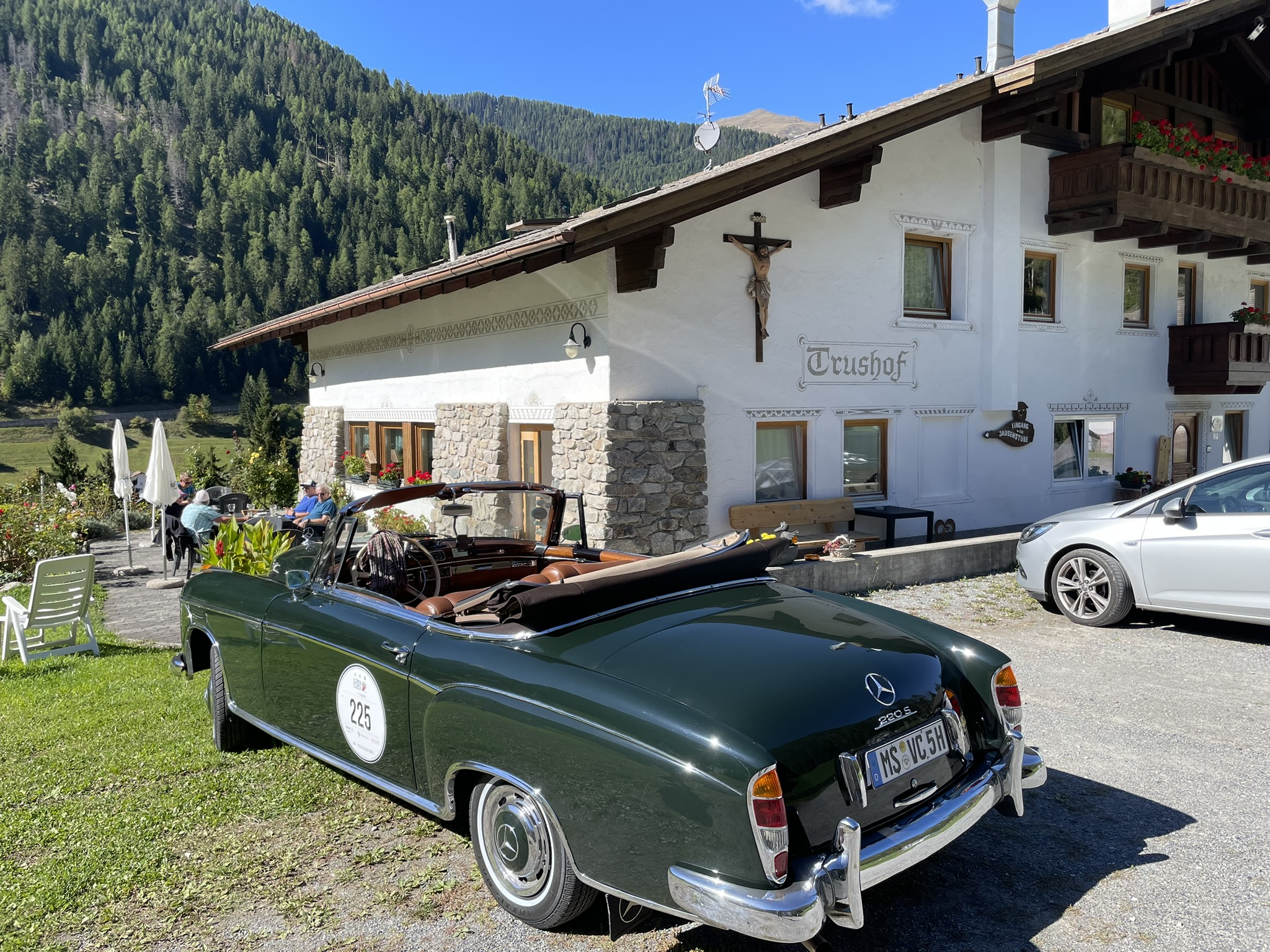 Die Anreise wählten wir gemütlich und starteten schon am 27.09.2025 zur ersten Übernachtung in Leutkirch im Allgäu. Am 28. fuhren wir über Klosters, über den Flüela- sowie Ofenpass ins Müstairtal, einer der vielen schönen Schweizer Nationalparks. Von Schweizer Seite aus ging es über den Umbrailpass hoch über die italienische Grenze und das Stilfser Joch (2.750 müM) wieder hinunter bis nach Trafoi in Südtirol. Hier waren wir für 2 Nächte im „Bella Vista“ angemeldet. An diesem schönen Hotel waren wir schon öfters achtlos vorbeigefahren, hatten es aber im Juli bei der „Jubiläumsfahrt 200 Jahre Stilfser Joch“ (https://mvcoldtimerticker.de/jubilaeumsfahrt-200-jahre-stilfser-joch/) und bei der Sommerausfahrt der „Südtirol Classic Schenna 2025“ schätzen gelernt – nun wir wollten es noch etwas näher kennenlernen.