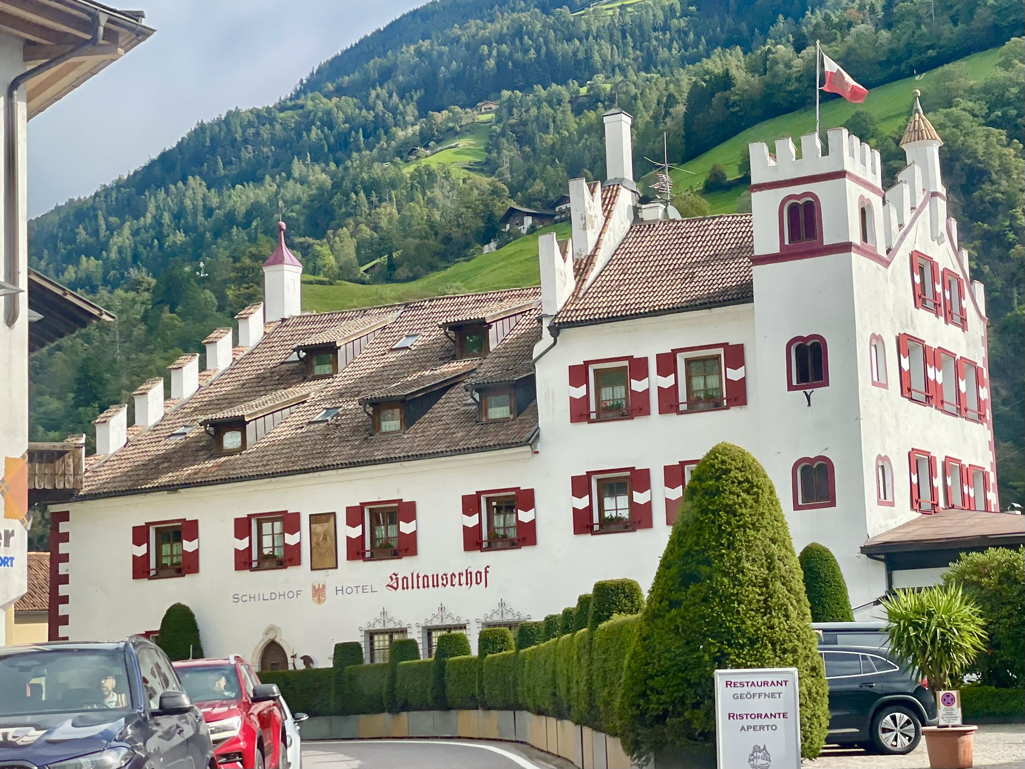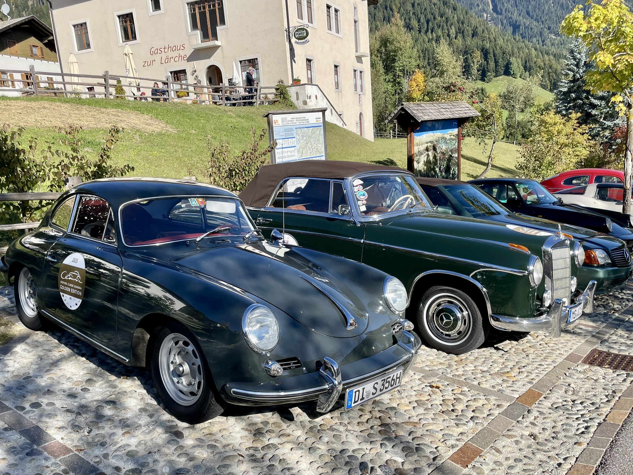 Am 30. Oktober 2025 ging es weiter nach Schenna oberhalb von Meran, wo wir wie immer im Hotel Innerhofer abstiegen und schon erwartet und freundlich begrüßt wurden. Abends genossen wir das „Südtirol Classic come together“ im Hotel Hohenwart. Stellenweise durfte sich der 220 S sogar mit den original-portugiesischen Kennzeichen zeigen!