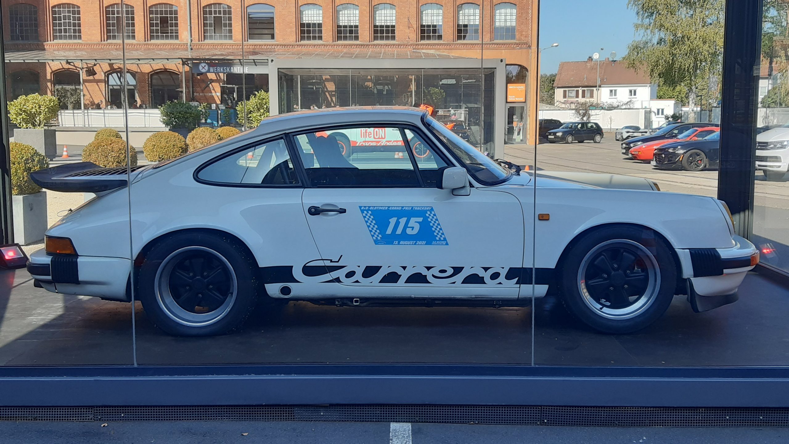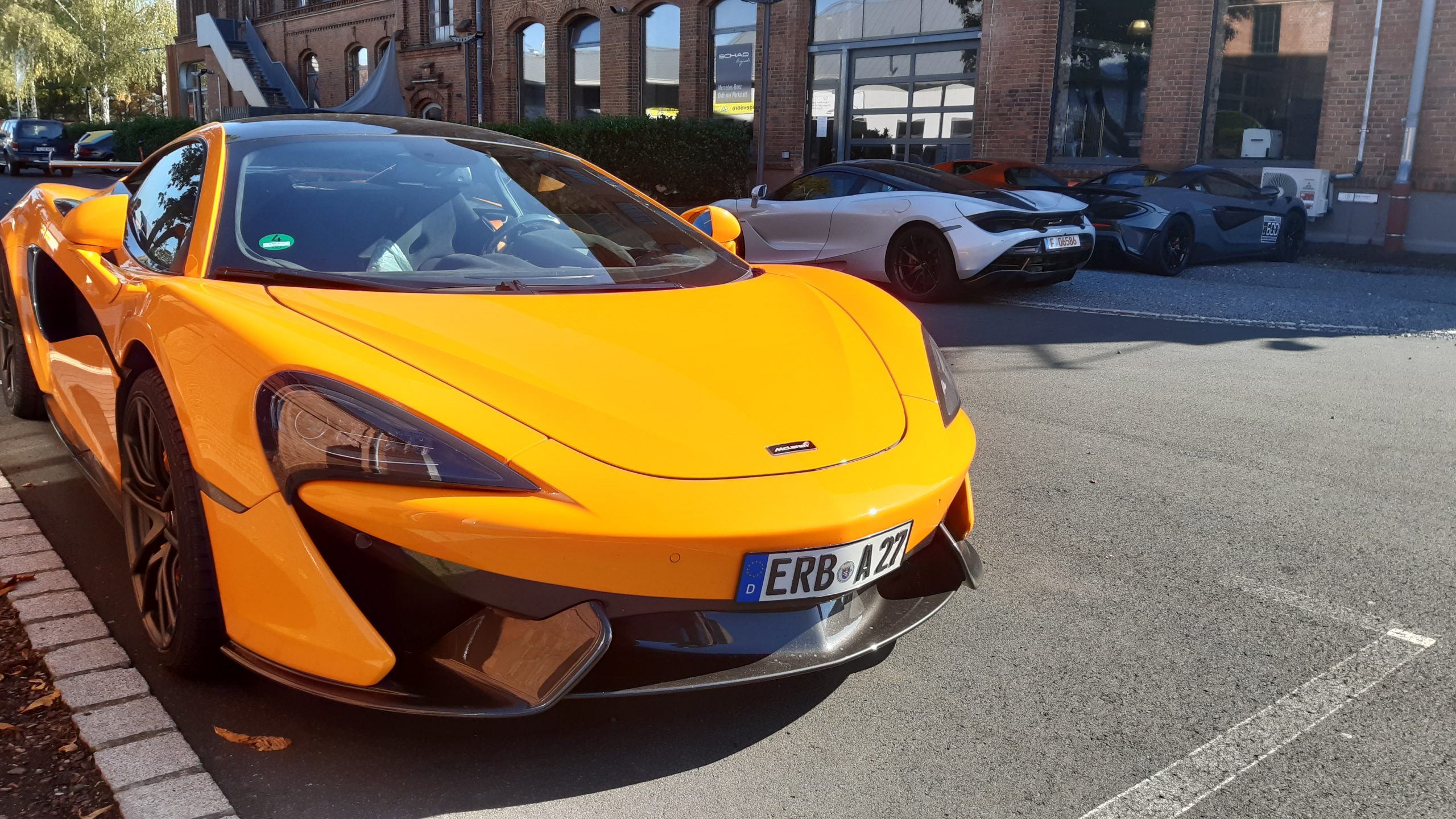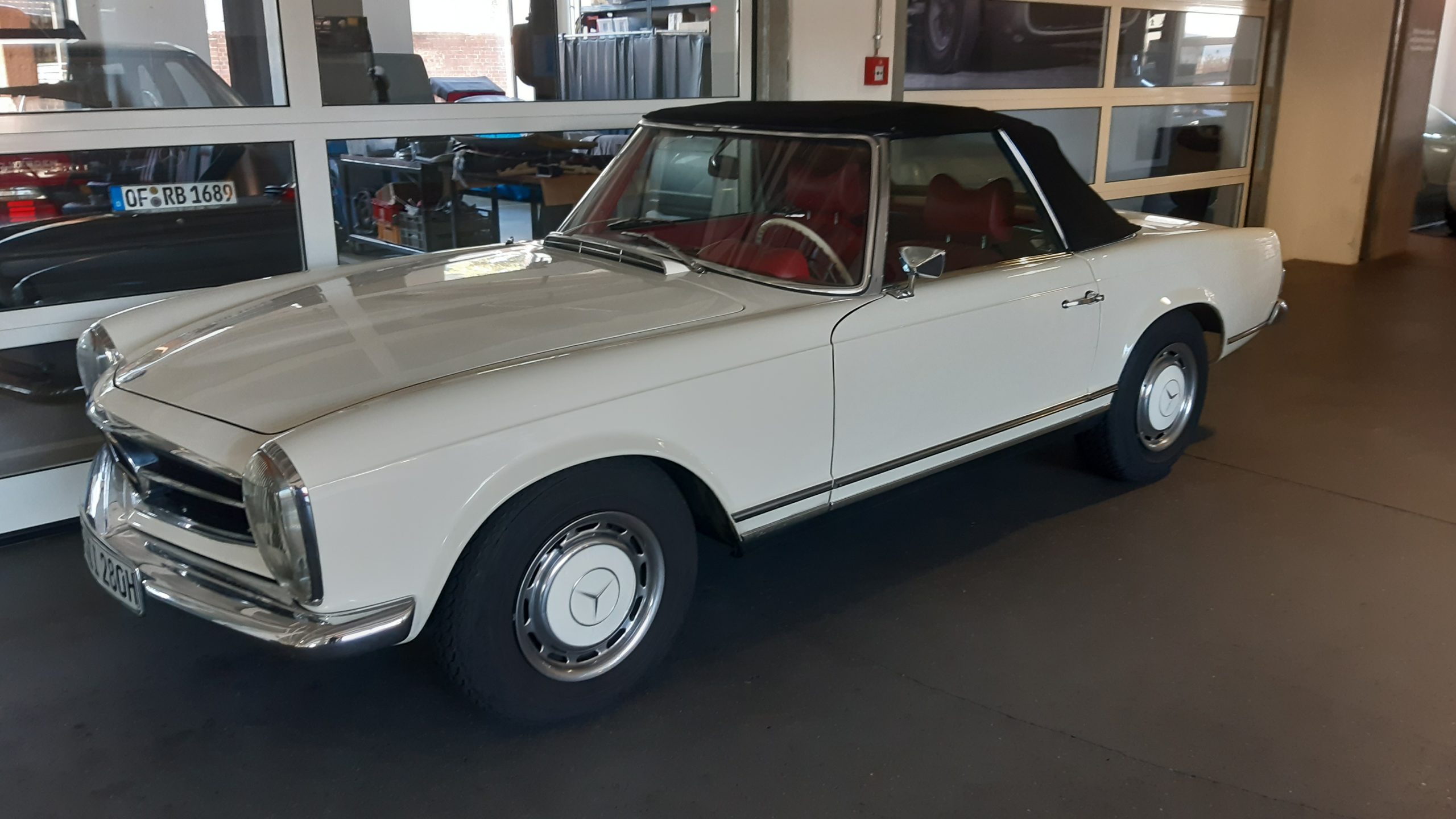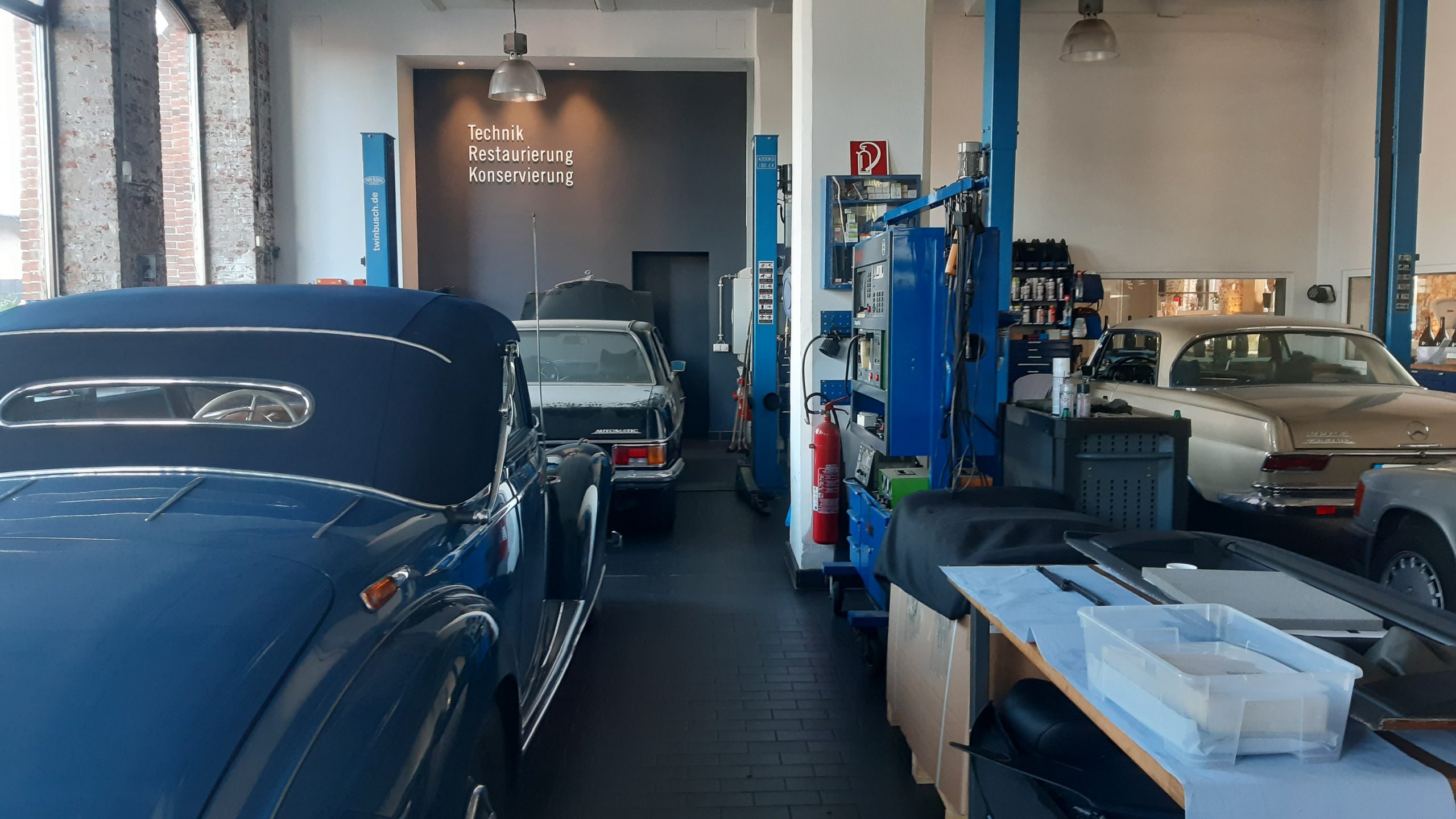 Das großzügige Gelände empfing mich bei bestem Klassikerwetter. Auf dem Parkplatz wechselten sich immer wieder Alltagsklassiker und Sammlerfahrzeuge ab (AMG E36 Coupé, Porsche 911T, Pagoden, Jaguar E-Type und Aston Martin-Sportwagen) und zwischendurch drehten nagelneue McLaren ihre Testrunde die in einer der zahlreichen Werkstätten gewartet oder repariert wurden.
