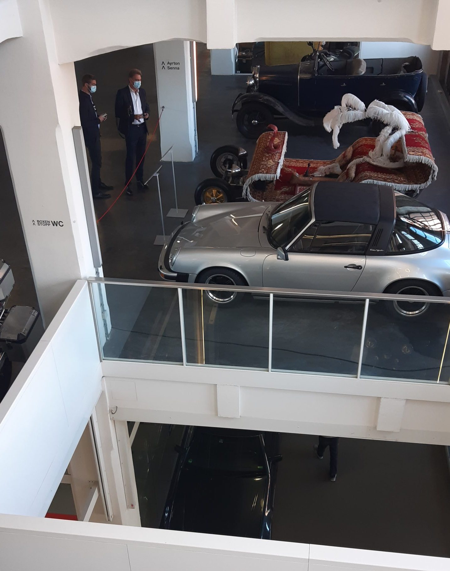 In den Innenräumen finden sich auf drei Etagen diverse Firmen mit Neuwagen (McLaren, Alpine, Polestar,…). Leider war man außer bei Alpine (ein sehr netter Verkäufer, der sehr für sein Produkt begeistern kann und auch für Nicht-Kaufwillige ein offenes Ohr hat!) nicht gerade an Kunden interessiert und bei Polestar war weder ein Prospekt, ein/e Verkäufer/in oder ein Fahrzeug am Platz…