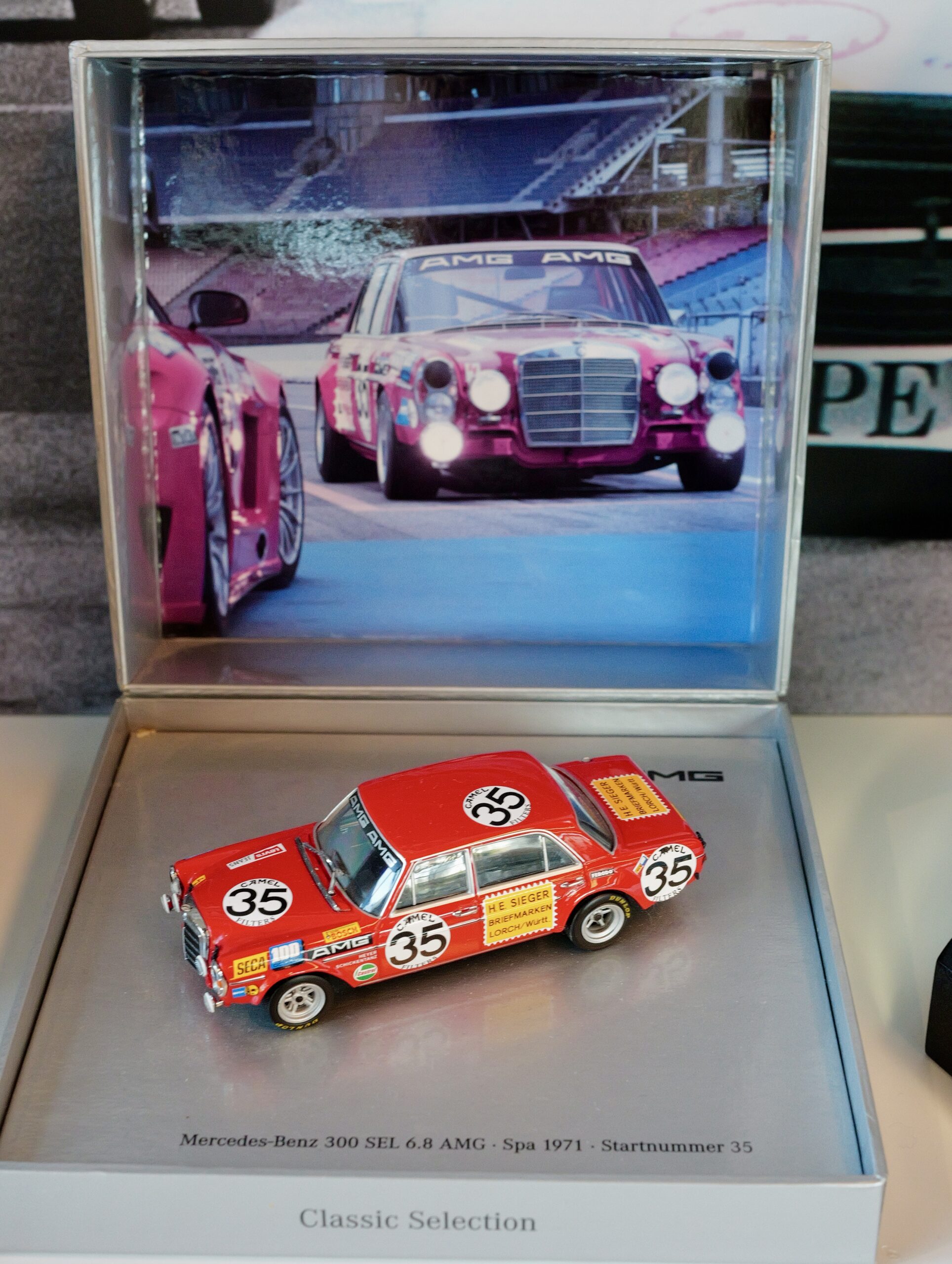 Die sogenannte „Rote Sau“, mit der in Spa-Francorchamps alles begann. ist nicht mehr vorhanden. Es gibt jedoch Nachbauten, die sowohl in Affalterbach selbst als auch in Fellbach im Mercedes Classic Center und in Stuttgart-Untertürkheim im Mercedes-Museum zu besichtigen sind.