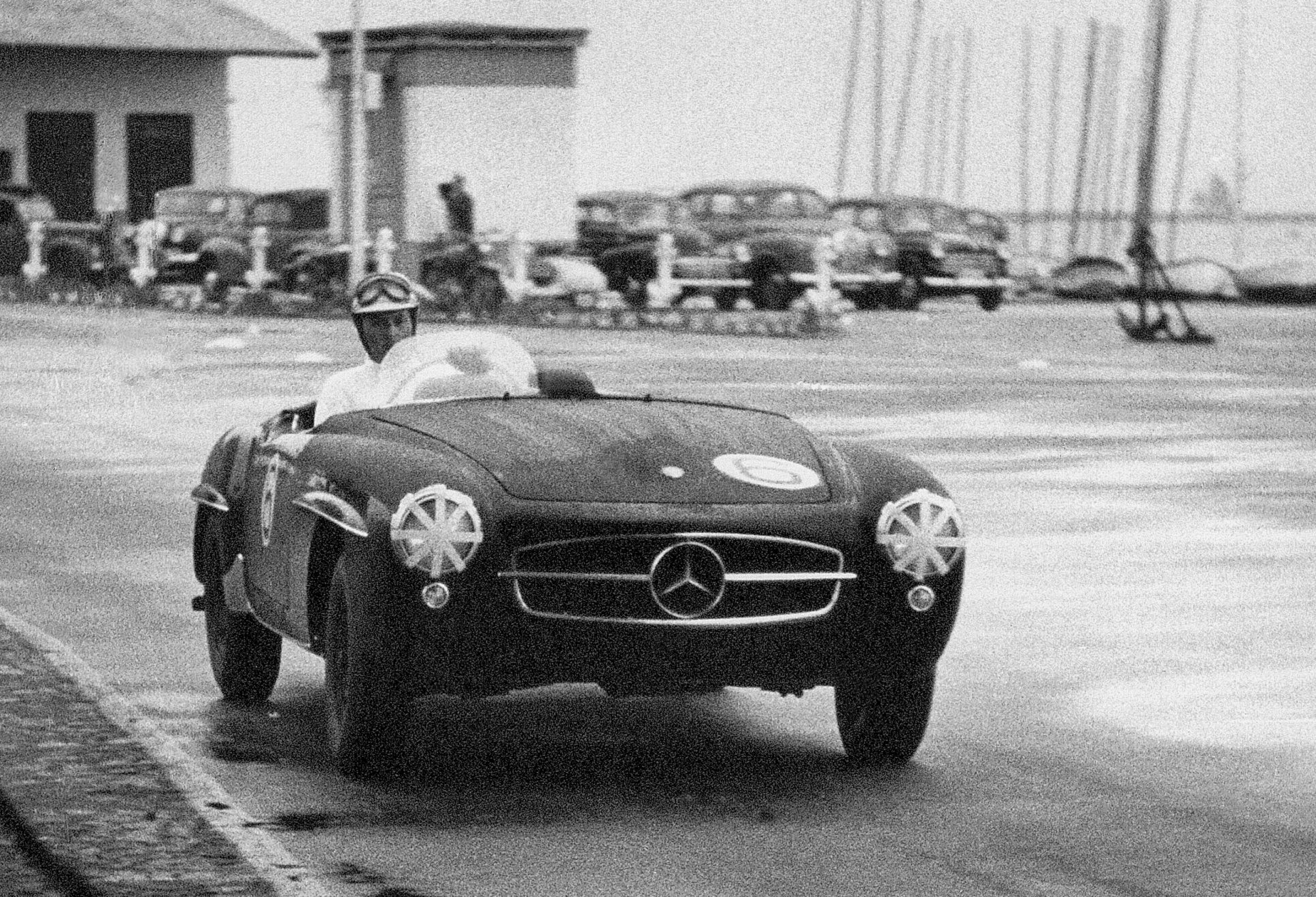 Auf der Rundstrecke eingesetzt werden zwei Fahrzeuge, die für sportliche Erfolge mit seriennahen Mercedes-Benz Sportwagen stehen: Der Mercedes-Benz 190 SL (W 121) in Sportausführung mit scheibenlosen Aluminiumtüren, verkleinerter Windschutzscheibe und weiteren Modifikationen macht den beliebten Lifestyle-Roadster (1955 bis 1963) zum Wettbewerbsfahrzeug. Zu seinen wichtigen Erfolgen gehört der Sieg von Douglas Steane beim Großen Preis von Macao 1956.