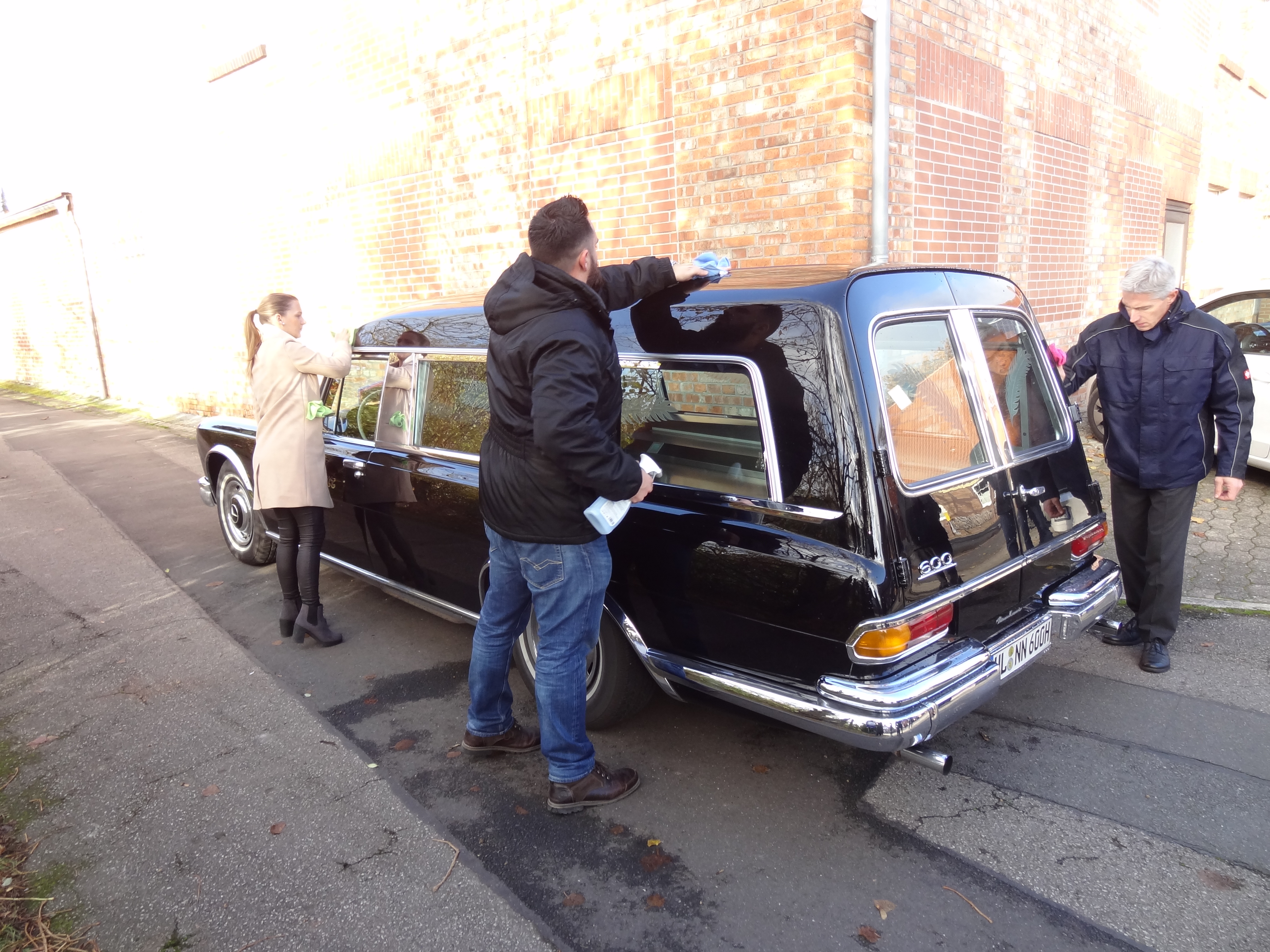 2.) Als die Szene am 4.11.2019 die traurige Nachricht erfuhr, entstand an verschiedenen Stellen, in verschiedenen Gruppen und Foren nahzu zeitgleich die Idee, die >Letzte Fahrt Sebastian Nast< in dem von Ihm so oft photoshop-technisch umgebauten Mercedes 600 W100 Leichenwagen zu ermöglichen. Durch die örtliche Nähe und den bestehenden Kontakt zum Bruder von Sebastian, fiel mir die ehrenwerte Aufgabe zu, mich um diese Idee aus der Szene zu kümmern. Nach der Kontaktaufnahme zur heutigen Besitzerfamilie des einzigen 600er Leichenwagens und einer generellen Zustimmung zur Idee der Szene konnte die Umsetzung starten.