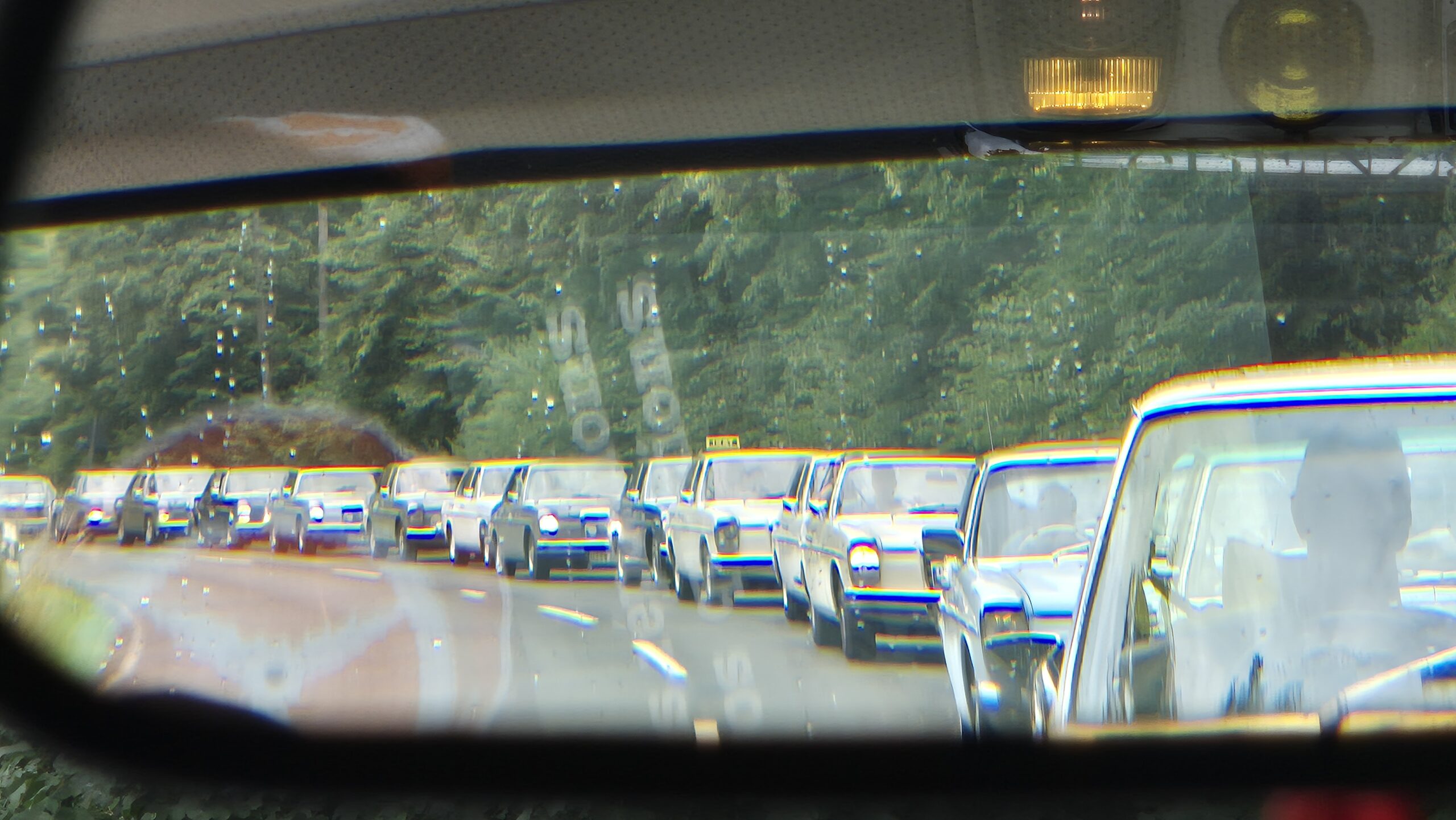 Nach dem obligatorischen /8er Frühstuck im Hotel (an dem auch Teilnehmer vom Campingplatz oder anderen Übernachtungsmöglichkeiten teilnehmen konnten) traf man sich in freudiger Erwartung an den Fahrzeugen für den Start des traditionellen KORSOS. Dabei wird versucht eine möglichst zusammenhängende lange /8er-Reihe einmal auf einer schönen Strecke vom Treffengelände durchs Umland und zurück zum Platz zu führen.