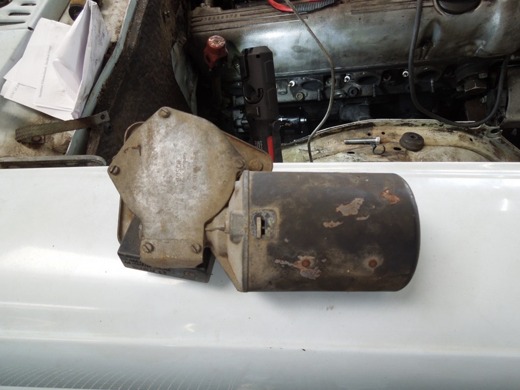 Ich packte den Wischermotor aus, um den Kabelbaum zu testen. Während ich dabei war, entwarf ich eine neue Dichtung dafür. Nach der Reinigung sah es viel besser aus. Das Gehäuse habe ich sandgestrahlt und schwarz neu lackiert. Ein weiteres Teil, das in eine Kiste gepackt und sofort eingebaut werden kann, wenn das Auto zurück ist.