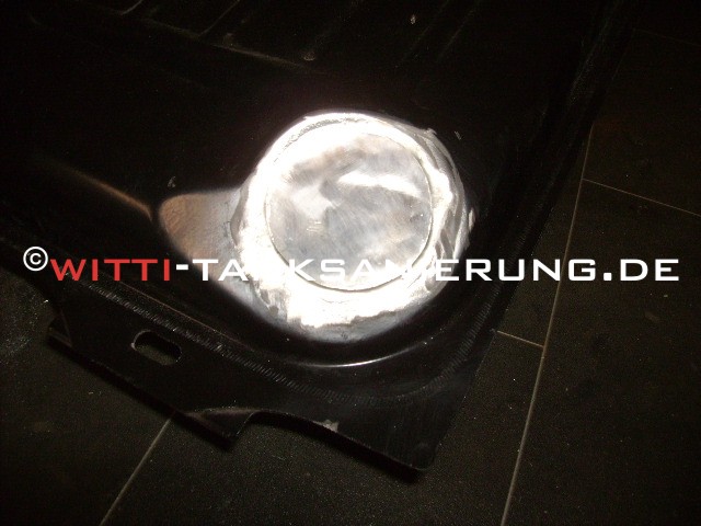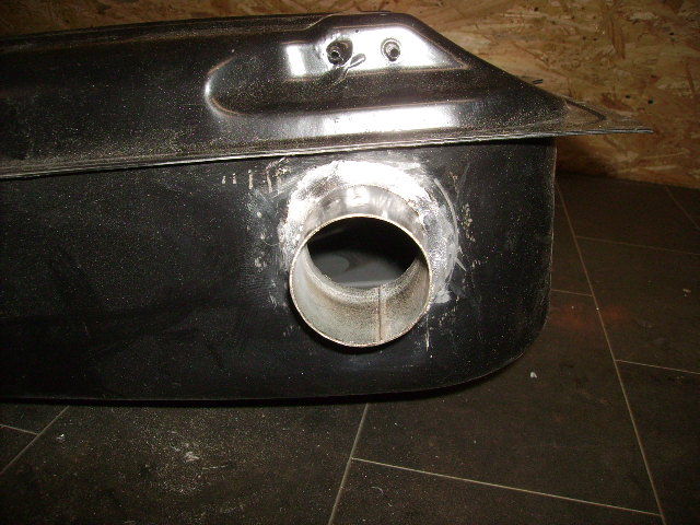 Also habe ich diese Ecke des Originaltanks ausgeschnitten und zusammen mit dem neuen Tank zur Modifikation geschickt. Ich habe das Füllstück am Ende ausgeschnitten, es geschlossen und ein neues Loch an der Originalposition geöffnet … hier sind einige Fotos von dem Typen, der meinen Tank modifiziert hat.