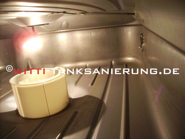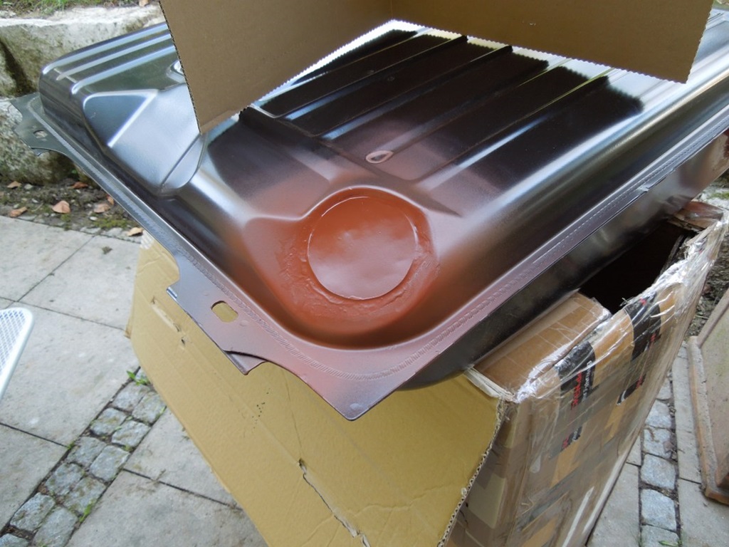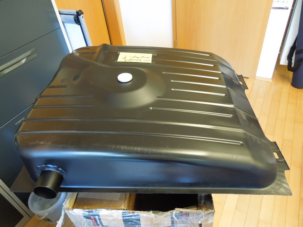 Also habe ich mir einen fabrikneuen W115 Tank (Nachbau) in der größeren Ausführung (82 Liter) gekauft. Beim Standard W115 befindet sich die Tankklappe hinten, neben dem Kennzeichen. Beim Pick-Up ist das aufgrund der Ladeluke nicht möglich, daher ist die Öffnung auf der rechten Seite.