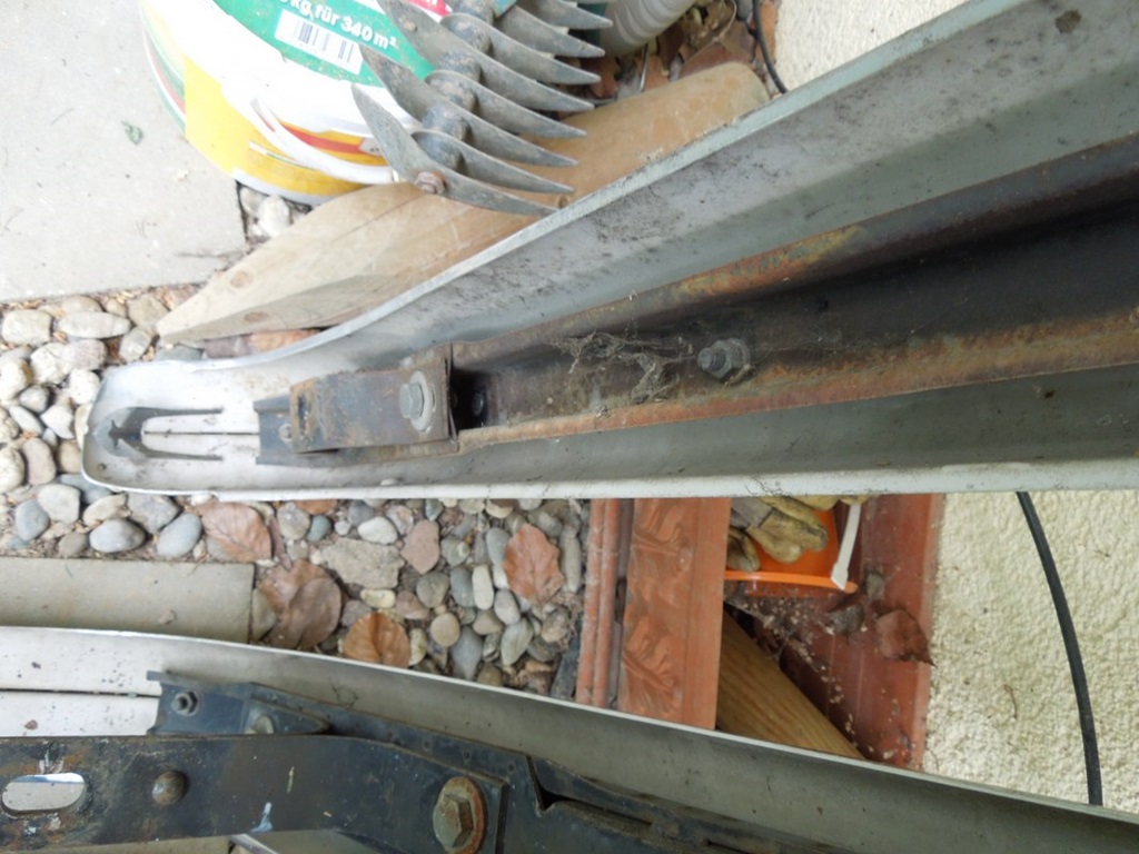 Ich habe den Rost an der Lippe, wo der Gummi aufliegt, so gut wie möglich entfernt und dann Brantho-Korrux 3-1 draufgestrichen … da sollte kein Rost mehr sein. Dann habe ich Wachs draufgesprüht und zusätzlich noch Wachs auf die kleinen Öffnungen der Lippe aufgetragen.