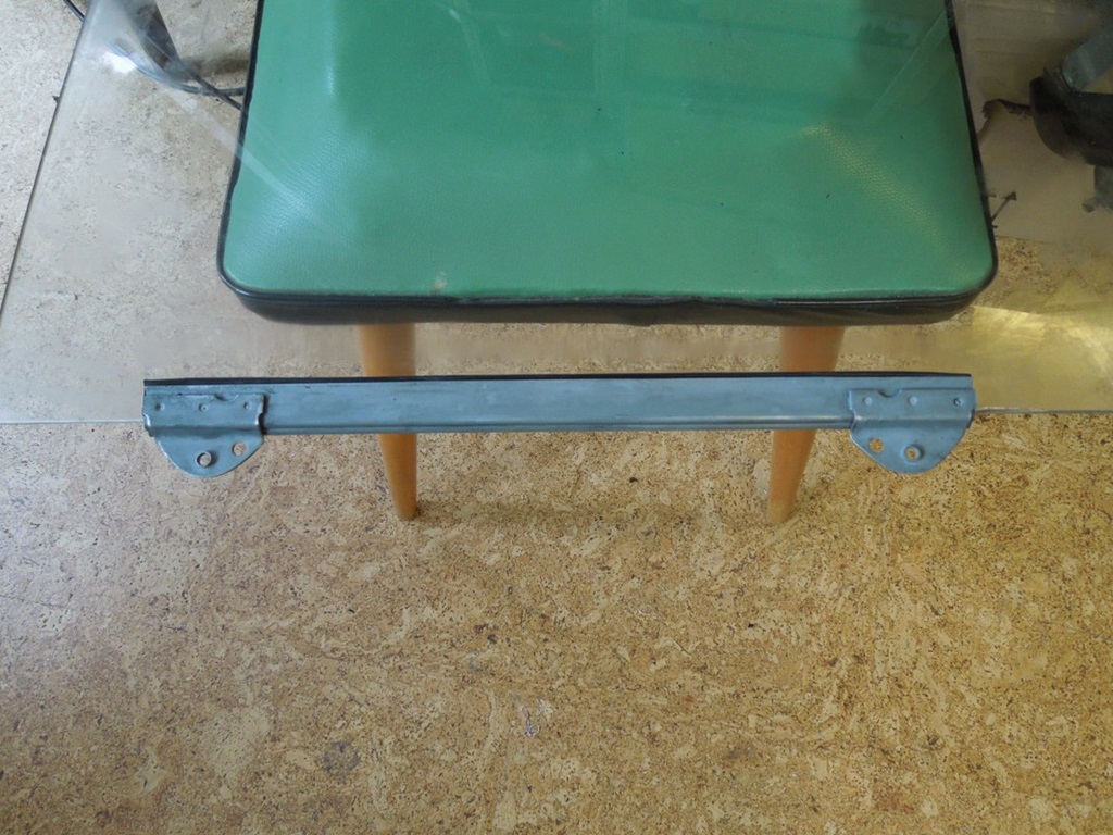 Es folgten neue Schrauben und eine neue Chromhalterung in der Mitte. Die Stahlhalterungen ebenfalls gewachst (innen und außen) und Wachs (Permafilm mit Pinsel) auf alle Schrauben oder wo Metall auf Metall ist aufgetragen. Nachdem alles wieder zusammengebaut war, wurde neues Gummi eingebaut; der Trick besteht darin, das Gummi um fast 180° in die entgegengesetzte Richtung zu biegen, damit es leicht eingebaut werden kann.