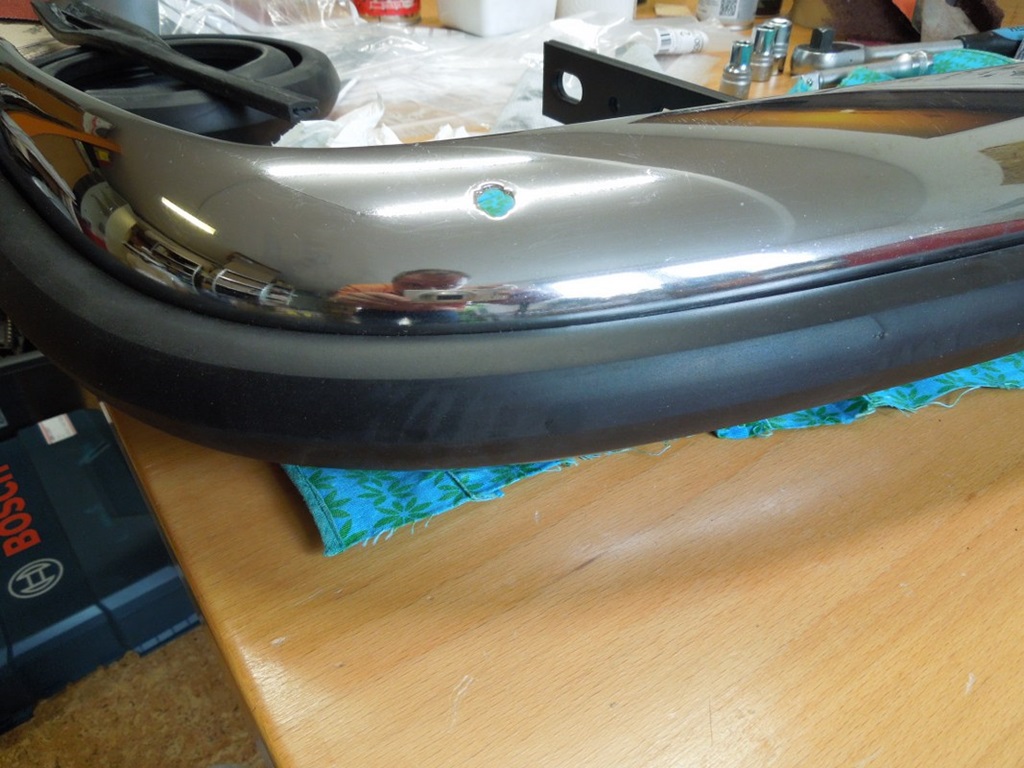 Durch Zufall bin ich auf eine junge Dame in Bayern gestoßen, die von Beruf Goldschmiedin ist und sich auf das Polieren und Reparieren von Zierleisten (und das Polieren von Edelstahl) spezialisiert hat. Ich habe ihr zwei zugeschnittene Stücke der Zierleiste geschickt und sie hat angefangen.