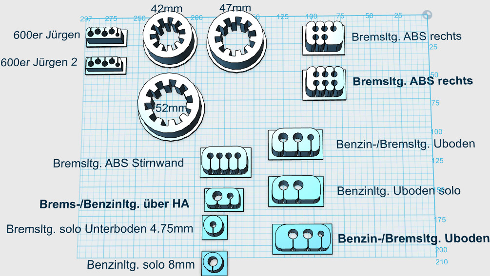 Ein weiteres Zeug, mit dem ich experimentiert habe, sind die Gummiblöcke, die für Bremsleitungen und Benzinleitungen verwendet werden. Einige sind nicht mehr erhältlich und – aufgrund des Umbaus – brauchte ich einige „Spezialteile“.