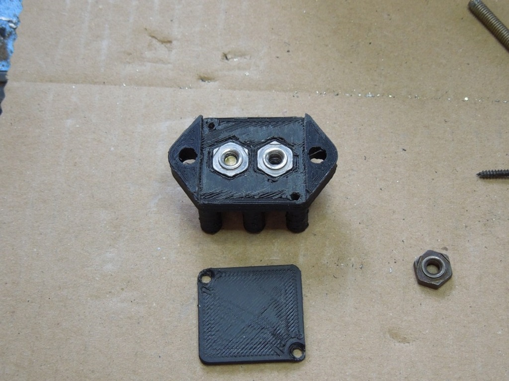 Bei Mercedes gibt es die nicht mehr, aber als Nachbau. Als ich das letzte Mal nachgeschaut habe, hat eine um die 35 (!) Euro gekostet. Das war mir zu viel. Also habe ich angefangen, sie auf meine Art zu konstruieren. Dazu habe ich zwei M4 Muttern verwendet, die in den Kunststoff eingepresst werden. Auf der Unterseite wird dann eine kleine Abdeckplatte aufgeschraubt.