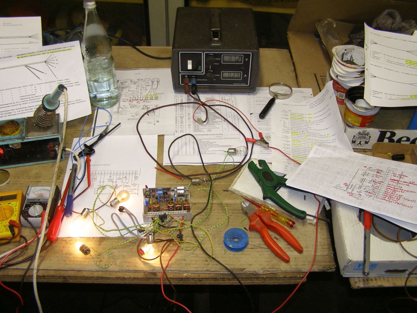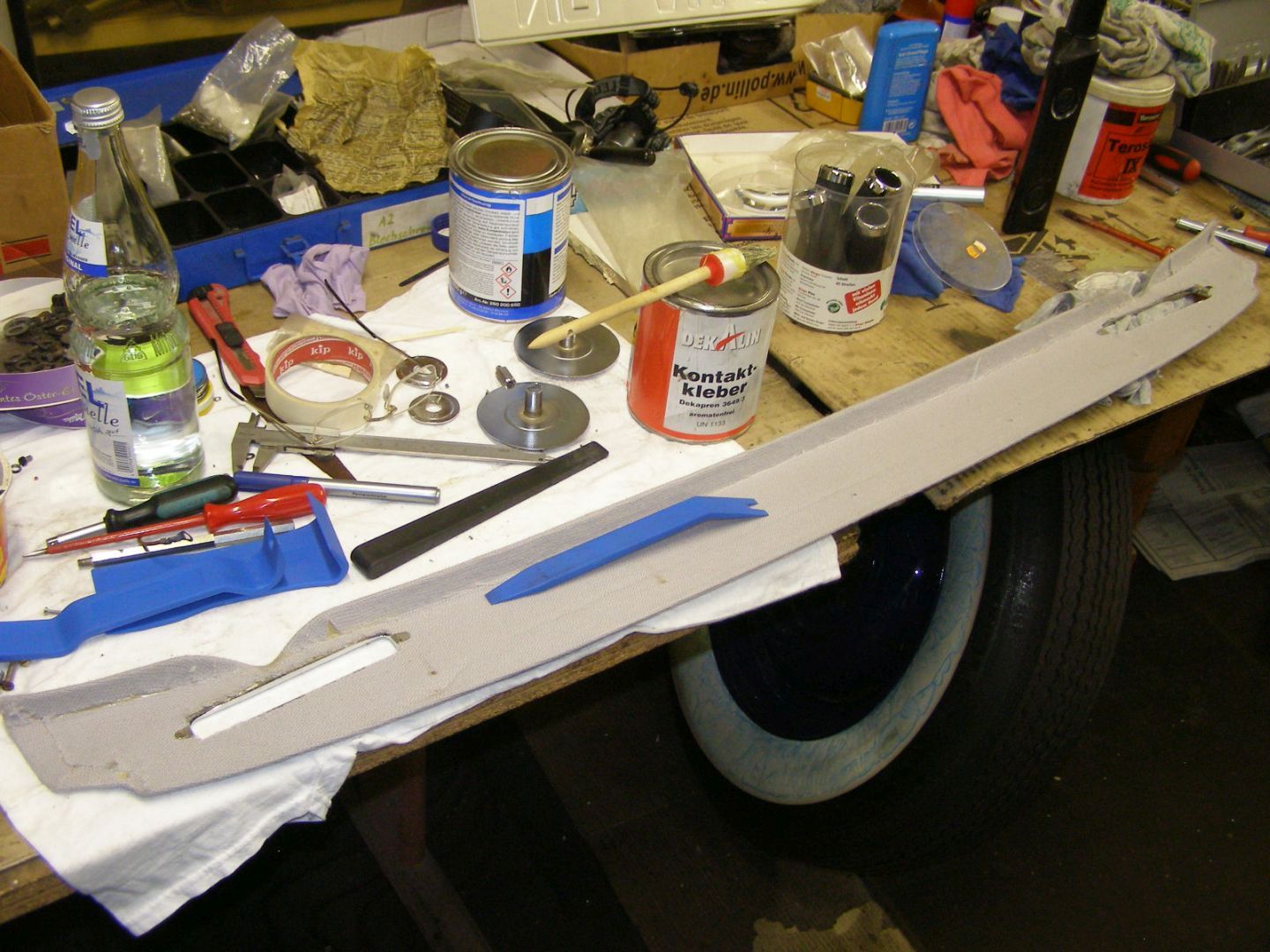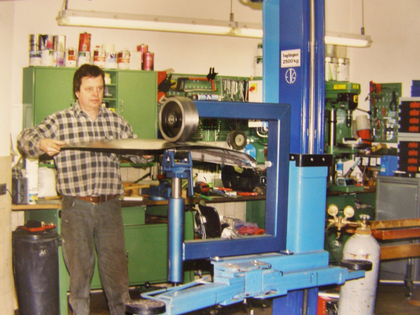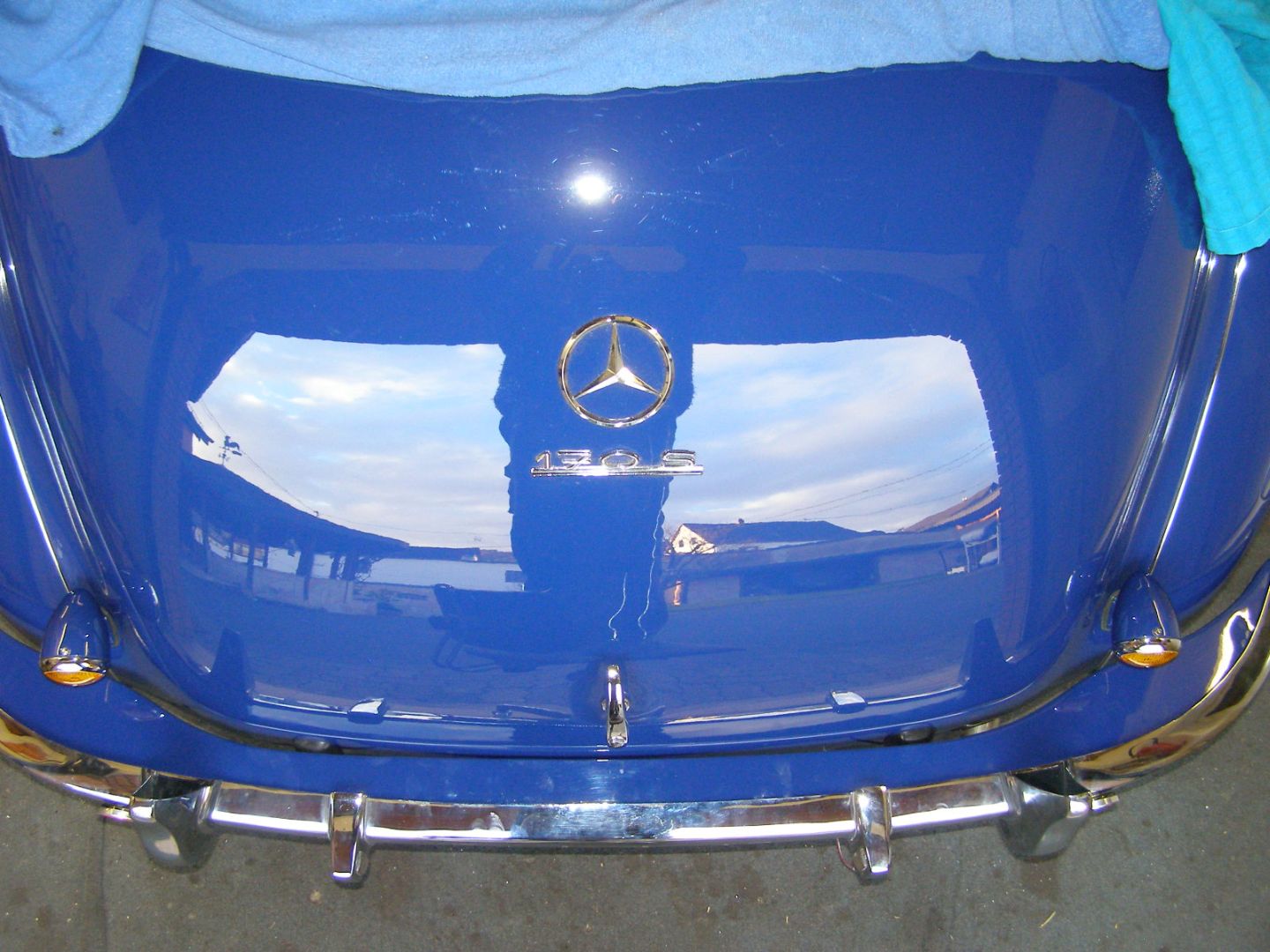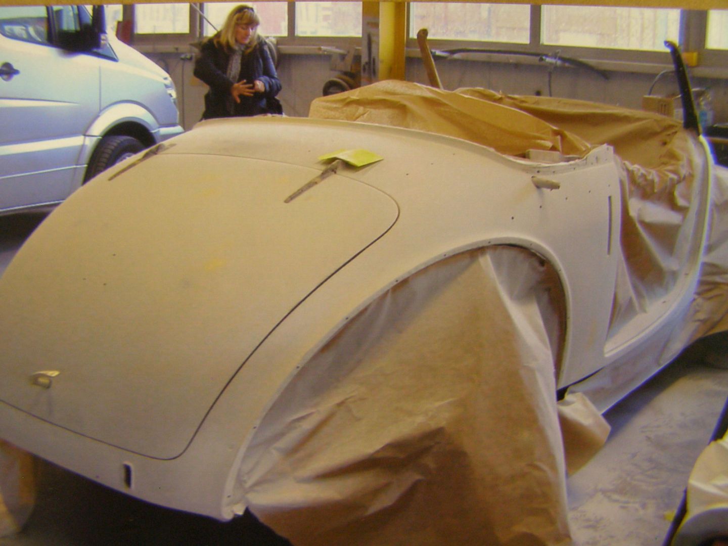 Nun zur Erklärung der am Ende des Artikels befindlichen Galerie: Am Anfang meiner 18-jährigen Restauration wurden die Fotos noch auf Zelluloidbasis gemacht und dann in Papierform archiviert, von denen ich heute ein paar abfotografiert habe. Ein paar letzte Fotos im Vergleich. Praktisch alle Interieurteile aus Holz, Leder, Teppiche, usw. dienten nur noch zur Vorlage für den Nachbau. Die beiden Ratten und –zig mumifizierte Mäuse habe ich nicht mehr restaurieren könnenJ Ich habe ca. 2000 Fotos von der Restauration gemacht. Davon will ich mit ca. 350 bis 400 Fotos noch ein Fotobuch mit dazugehörenden Texten machen. Aber – zuerst muss der Wagen mal auf die Straße. Dieses 170er S A-Cabrio ist am 04.07.1951 in der Schweiz erstmals zugelassen worden und am 20.02.1968 letztmalig in Lausanne/Schweiz abgemeldet worden. Nach dem teileweisen Auseinanderbauen von zwei Schweizer „Restaurateuren“ und vor einem weiteren Restaurationsversuch in Deutschland kaufte ich 1999 die Fragmente und Einzelteile von einem Deutschen „Fantasten“ ab. Aus den wenigen Daten ist ersichtlich, dass mit fast 50 Jahren Stilllegung und meiner rund 18 jährigen Restauration schon riesige Zeitspannen resultieren. Die Fotos beweisen es, dass die Zeit weiterlief und im wahrsten Sinne des Wortes auch bei mir im Gesicht geschrieben steht. Natürlich habe ich zwischendurch auch schon mal etwas anderes gemacht und auch ein paar andere Fahrzeuge auf die Beine gestellt. Aber die ersten zwei Jahre und die letzten zwei Jahre habe ich mich fast ausschließlich mit dem 170er beschäftigt, sodass summa summarum schätzungsweise mindestens 5000 Arbeitsstunden zusammengekommen sind. Das Fahrgestell mit Achsen, Bremsen, Zentralschmieranlage, Antriebsstrang usw. war noch mit Abstand das Einfachste. Schwieriger mit sehr viel Zeitaufwand folgte das Anfertigen, natürlich aus über 20 Jahre trocken gelagerter Esche, von Karosserieholz und Türrahmenholz über dreidimensionale eigens angefertigte Schablonen, Unterkonstruktionen für Interieurteile, Verdeckgestell und Spriegel. Gut vier Jahre war ich nur mit der Karosserieschweißung zu Gange. Jeden Kotflügel (die vorderen sind je 2,90m lang) und jede Tür oder Haube habe ich durchschnittlich je 100mal probemontiert. Es wird hoffentlich nicht als Angeberei gewertet, wenn ich ganz besonders stolz auf die genauen und gleichmäßigen Karosseriespaltmaße im Zehntelmillimeterbereich bin. Die Karosseriefluchten, Rundungen und Radausschnitte sind einwandfrei. Ein Jahr lang beschäftigte ich mich nur mit der Karosserieverzinnung und Grundierung. Dann sämtliche Vollmessing-Zierleisten auf genaue Länge der Spaltmaßen angepasst, gefeilt und teilweise mit Messing und Lot verlängert und allesamt den Rundungen der Karosserieform saugend gebogen und mit Schweifhammer auf Linie getrieben, angepasst und probemontiert. Die gleiche Prozedere mit Kühlerverkleidung, Verdeckchrom, Sturmstangen, Fensterchrom, Steinschlagecken, usw. Mehrere Jahre beschäftigte ich mich zwischendurch immer wieder mit allen Reparaturen von Einzelaggregaten wie Getriebe, Lenkgetriebe und Motor, Motoranbauteilen, technische Einzelteile wie Scheibenwischerteile, Schlösser, Scharniere, Fensterheber, Armaturen, Instrumenten, Interieurteilen, Tank, Anbauteilen wie Stoßstangen, Zierleisten, Lampen, Felgen, usw. usw. usw….