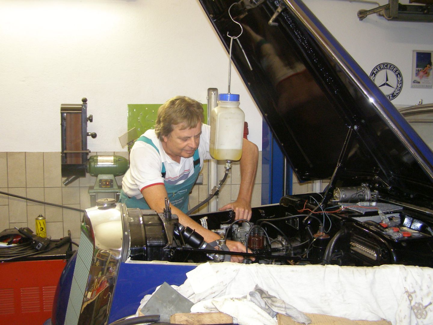 Vor der Tour nach Niedernhausen bekommt er nochmals neues Öl, Kühlwasser und Bremsflüssigkeit. Mehr kann ich für ihn nicht tun. Trockenes Sommerwetter wünschen wir natürlich nicht nur uns und unserem frisch restaurierten SAC, sondern Euch allen!