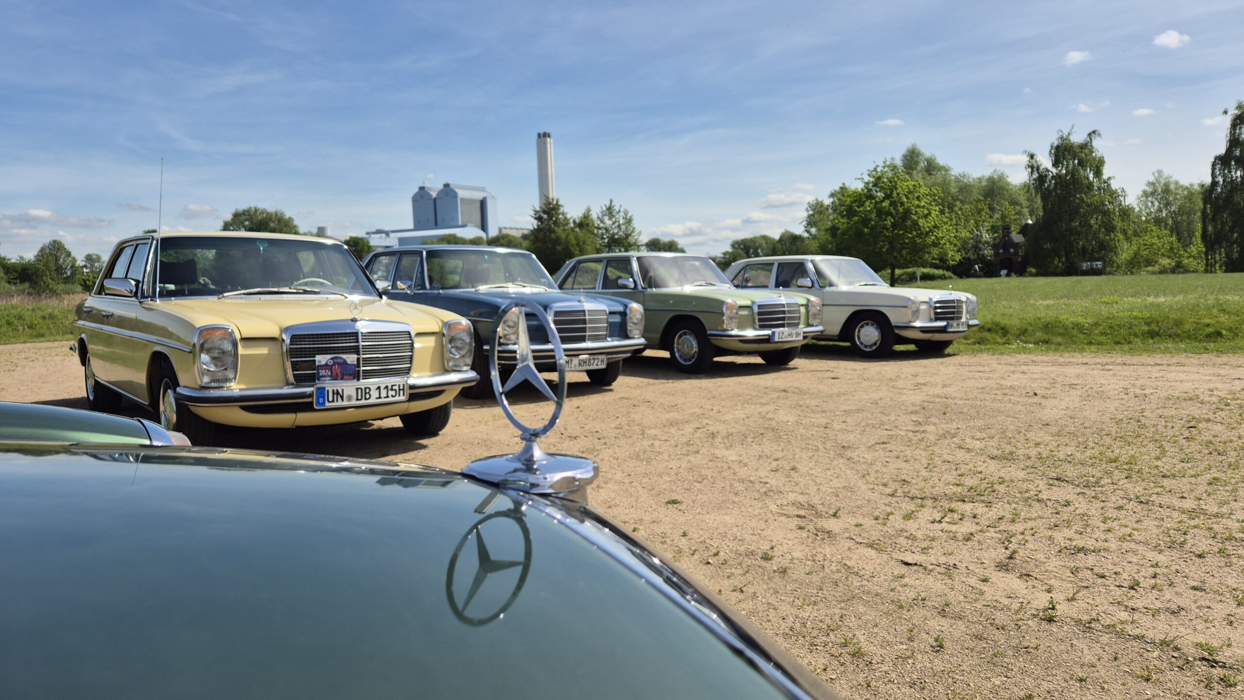 55 Fahrzeuge der Baureihe W114 / W115 kamen und erlebten einen tollen Tag. Neben einer tollen Auswahl des Geländes auf der Wasserkunst Elbinsel Kalthofe, die einfach ruhig aber verkehrsgünstig gelegen, genügend Platz für alle Teilnehmer/innen bot, konnte man dort auch so einiges sehen. Es wurden verschieden lange Führungen durch die Anlage angeboten.