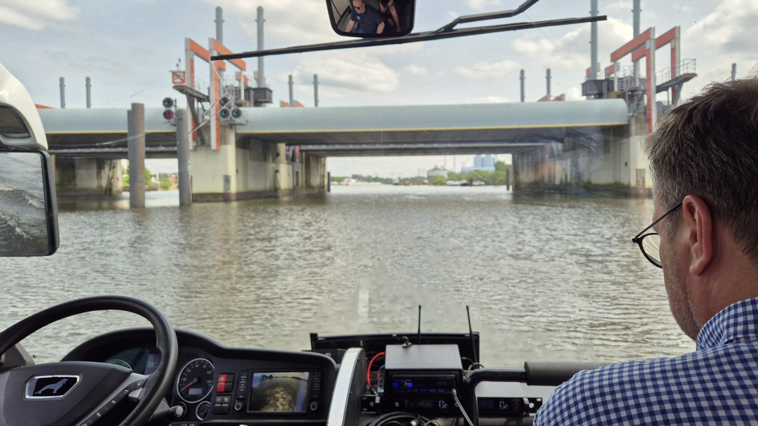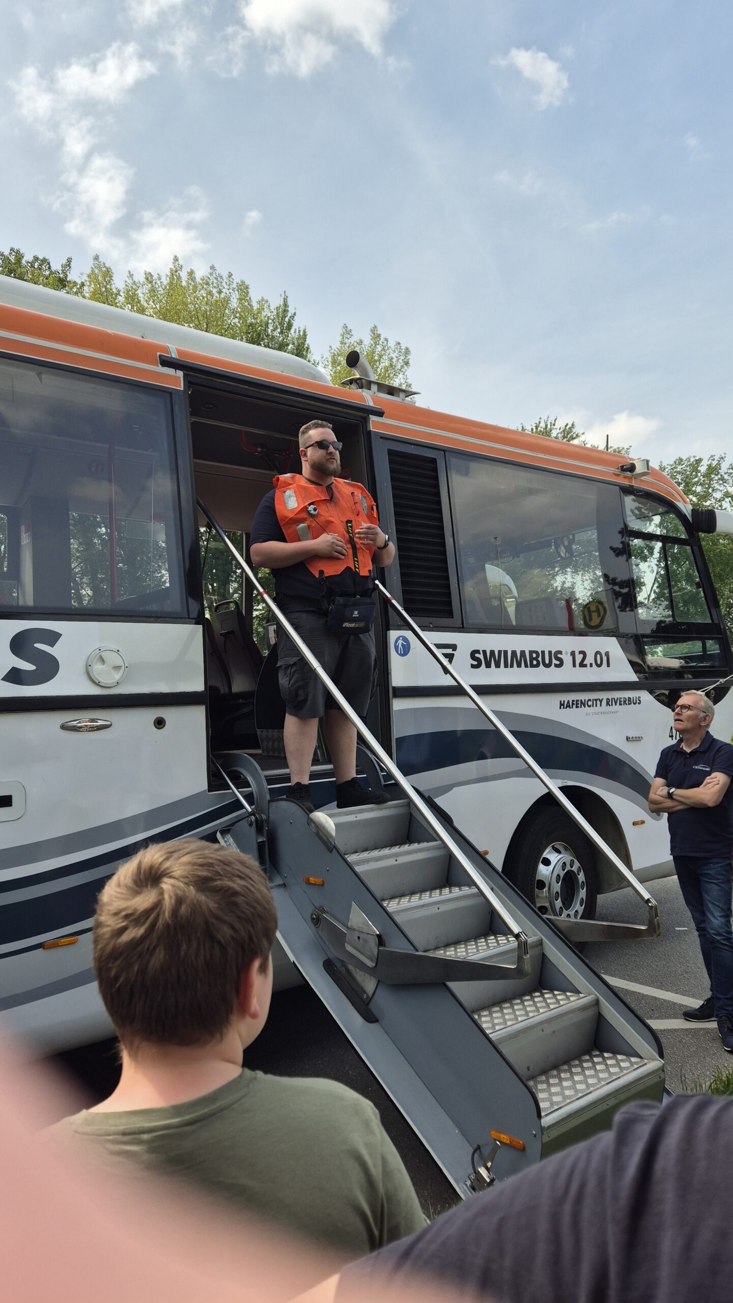 Für die Frühangemeldeten gab es die Möglichkeit mit einem Bus eine Hafenrundfahrt zu Land und zu Wasser zu machen, natürlich mit einer entsprechenden Einweisung in die Handhabung der Schwimmwesten.