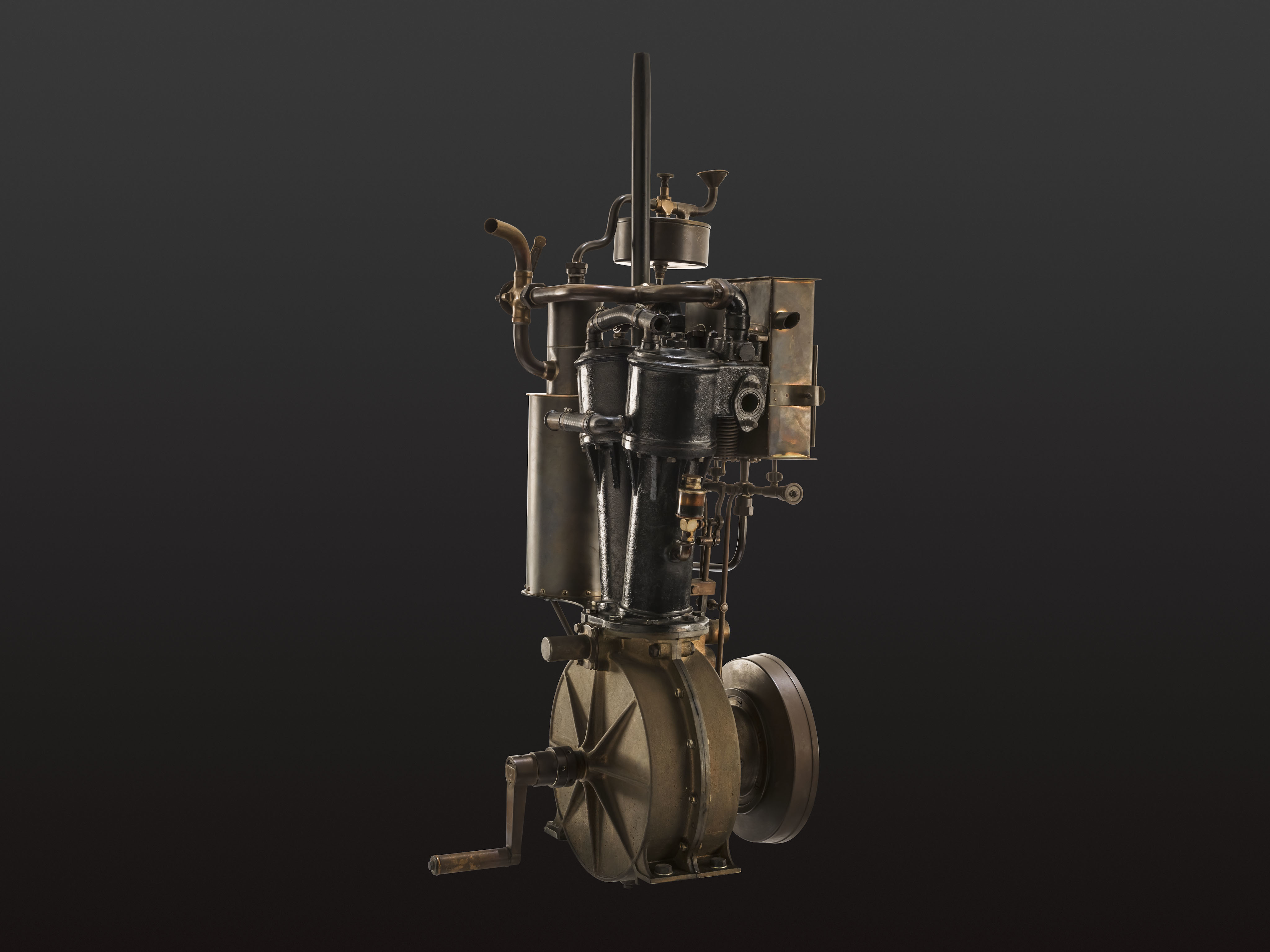 - Daimler Zweizylinder-V-Motor, 1889. Studioaufnahme. Daimler two-cylinder V-engine, 1889. Studio shot.