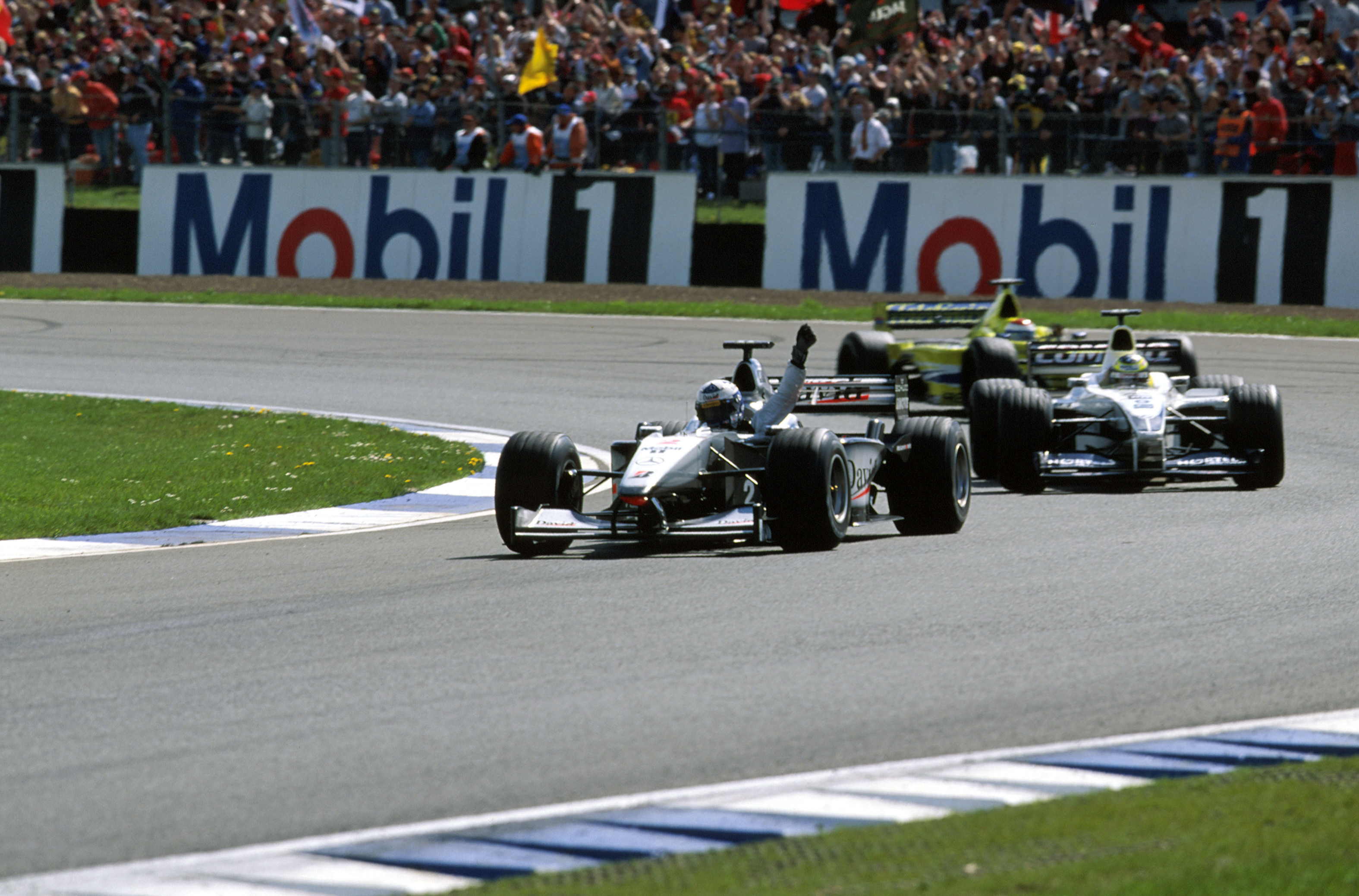- Großer Preis von England in Silverstone, 23. April 2000. David Coulthard auf McLaren-Mercedes MP4/15 erzielt den ersten Saisonsieg für McLaren-Mercedes und wird am Ende der Saison Dritter in der Fahrerwertung. British Grand Prix in Silverstone, 23 April 2000. David Coulthard in the McLaren-Mercedes MP4/15 picks up his first victory of the season for McLaren-Mercedes and finishes third in the drivers’ ratings at the end of the season.