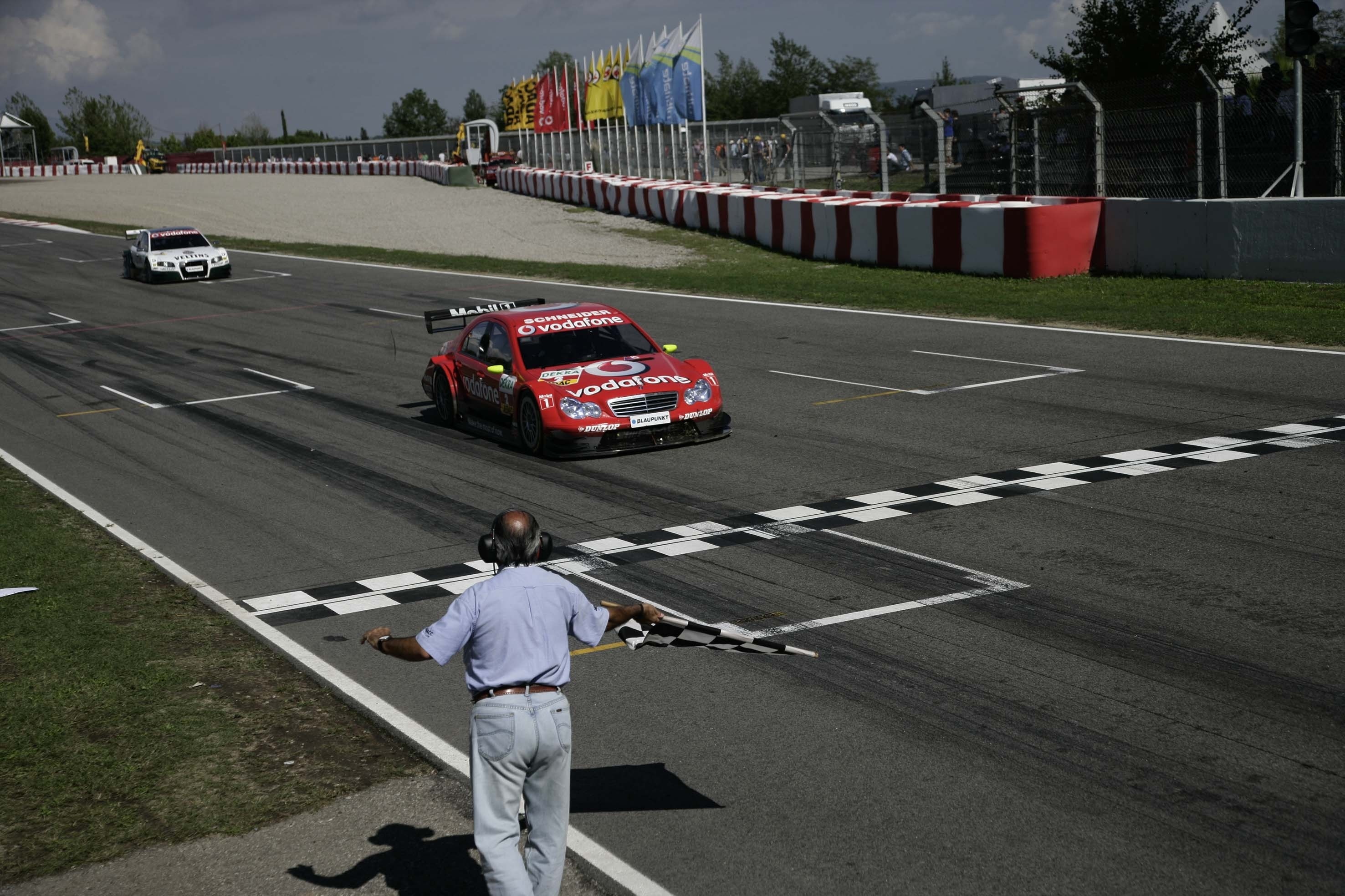 - DTM-Rennen in Barcelona, 24. September 2006: Bernd Schneider auf Vodafone AMG-Mercedes C-Klasse DTM-Tourenwagen (W 203) kommt als Zweiter ins Ziel und wird schließlich nach 1995, 2000, 2001 und 2003 zum fünften Mal DTM-Champion. DTM race in Barcelona, 24 September 2006: September 2006: Bernd Schneider in a Vodafone AMG-Mercedes C-Class DTM touring car (W 203) finishes second and finally becomes DTM Champion for the fifth time after 1995, 2000, 2001 and 2003.