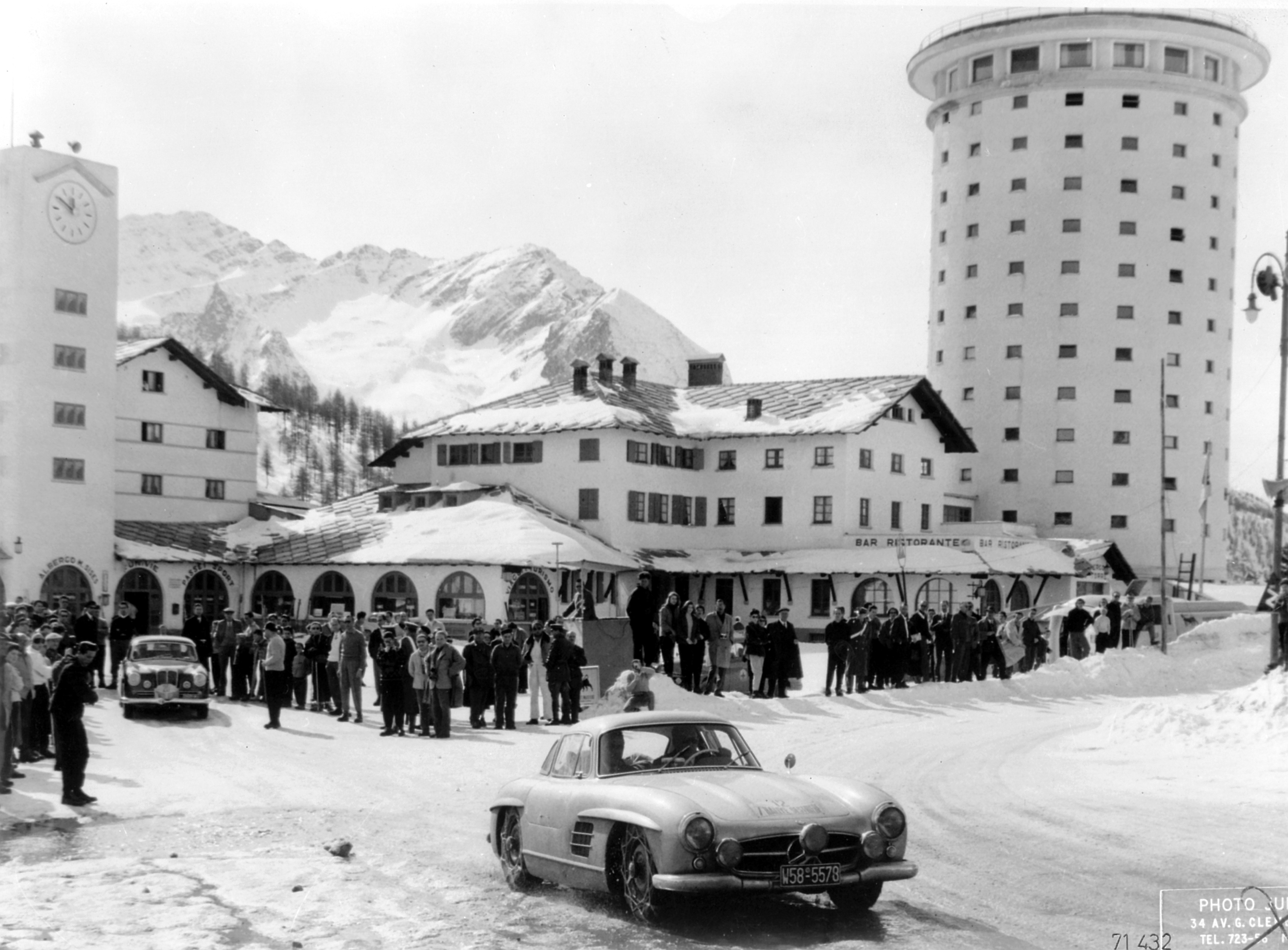 - Großglockner-Bergrennen, 6. August 1939, Training. Der spätere Sieger Hermann Lang (Startnummer 128) mit einem Mercedes-Benz W 125 Bergrennwagen mit 5,6-Liter-Motor, zum Versuch der Traktionsverbesserung mit Doppelbereifung an der Hinterachse. Direkt hinter dem Fahrzeug ein nur im Training eingesetzter W 154, daneben ein weiterer W 125 Bergrennwagen mit der Startnummer 127, mit dem Manfred von Brauchitsch im Rennen auf den 4. Platz kommt.