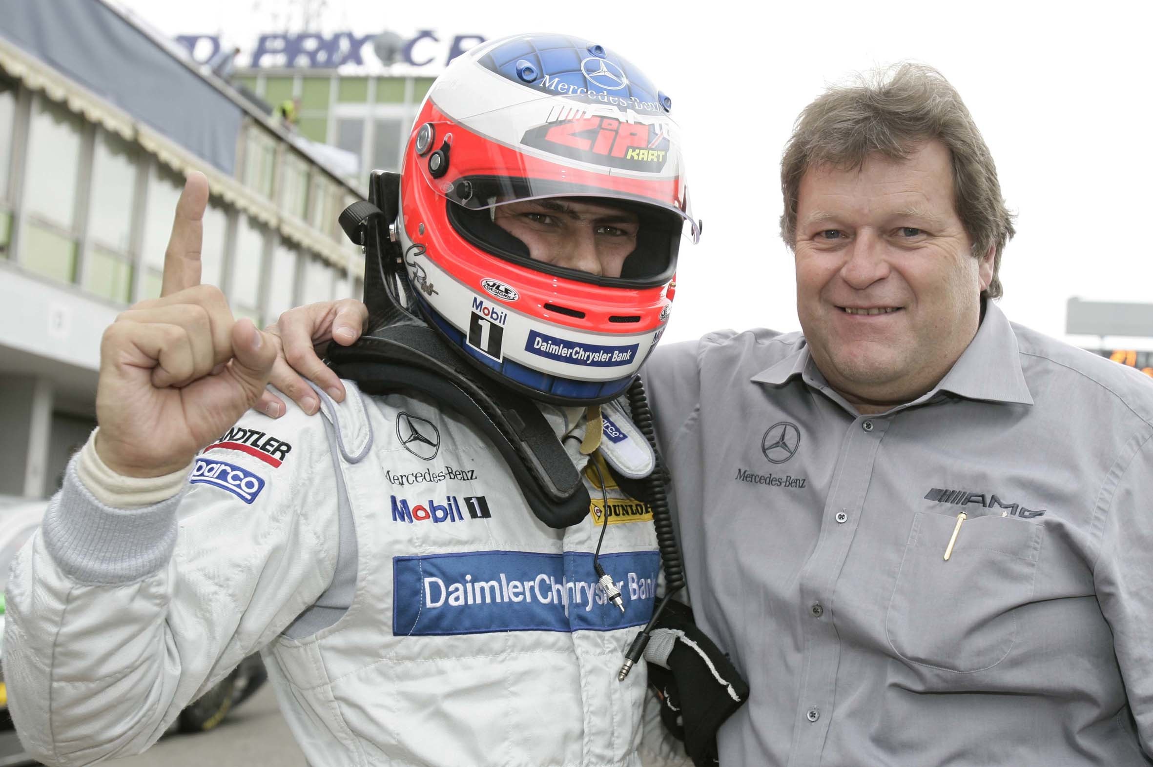 - Norbert Haug (rechts) und DTM-Rennfahrer Gary Paffett, Foto aus dem Jahr 2005. Norbert Haug (right) and DTM racing driver Gary Paffett, photo from 2005.