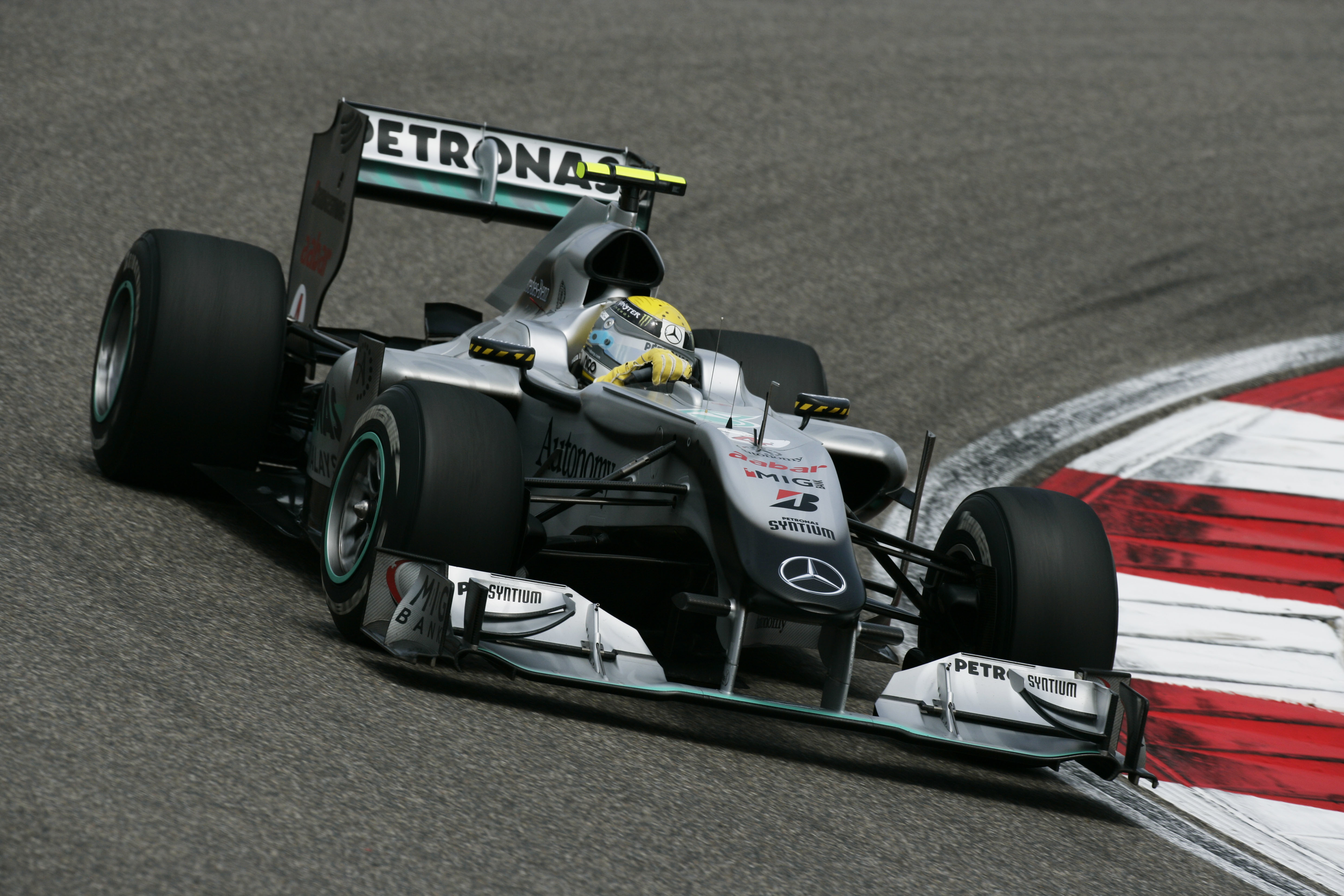 - Großer Preis von China in Shanghai, 18. April 2010. Nico Rosberg erringt auf dem neuen Silberpfeil MGP F1 W01 mit Platz drei den ersten Podiumsplatz für das neue Werksteam. China Grand Prix in Shanghai, 18 April 2010. Nico Rosberg in the new Silver Arrow MGP F1 W01 wins the first podium place for the new factory team with third place.