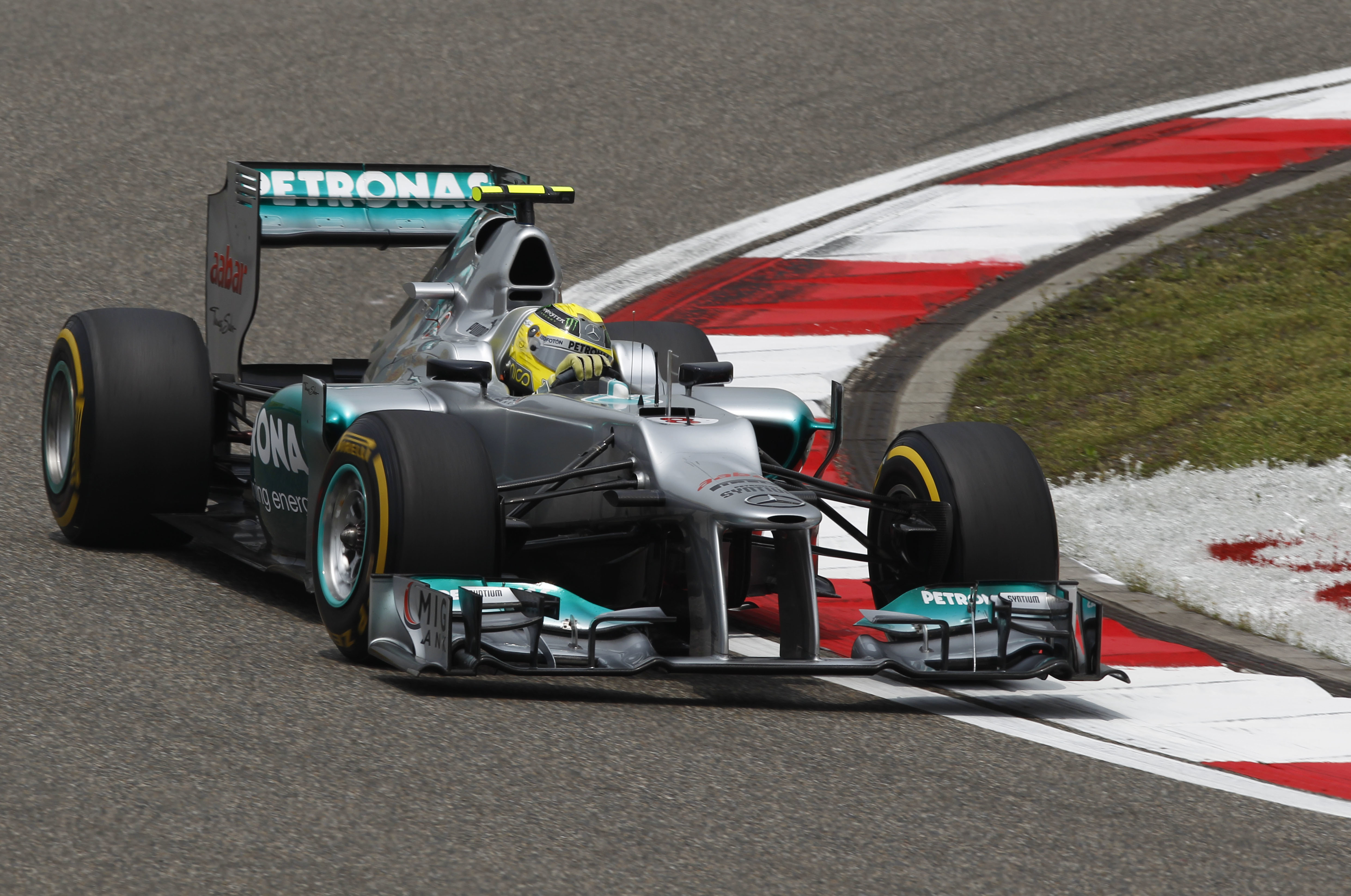 - Großer Preis von China in Shanghai, 15. April 2012. Nico Rosberg (im Bild vorn) startet von der Pole Position und gewinnt das Rennen auf Mercedes F1 W03. Damit erzielt er seinen ersten Formel-1-Sieg und zugleich den ersten Sieg für Mercedes-AMG Petronas Motorsport. China Grand Prix in Shanghai, 15 April 2012. Nico Rosberg (in front) starts from pole position and wins the race in a Mercedes F1 W03. This is his first Formula 1 victory and also the first victory for Mercedes-AMG Petronas Motorsport.
