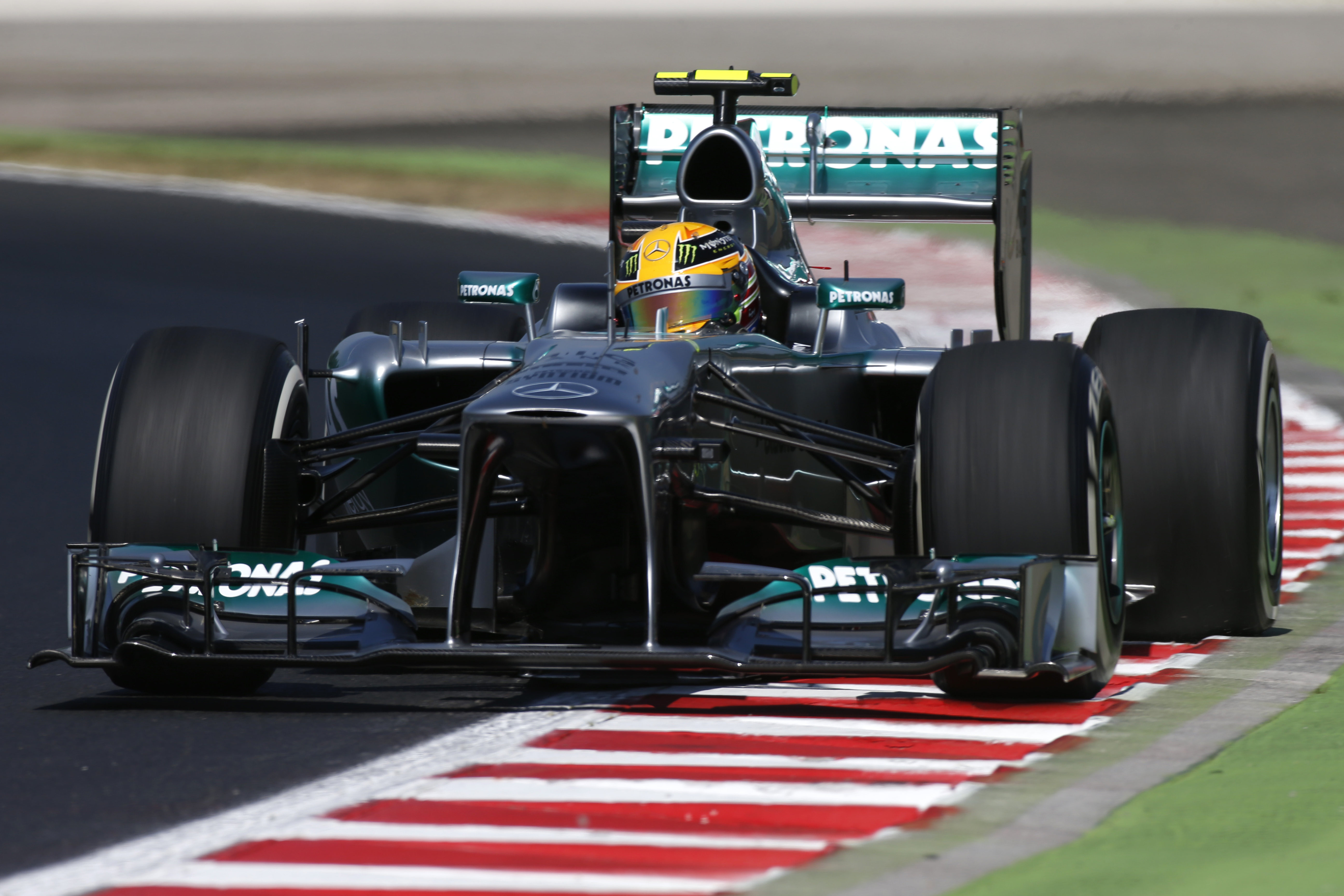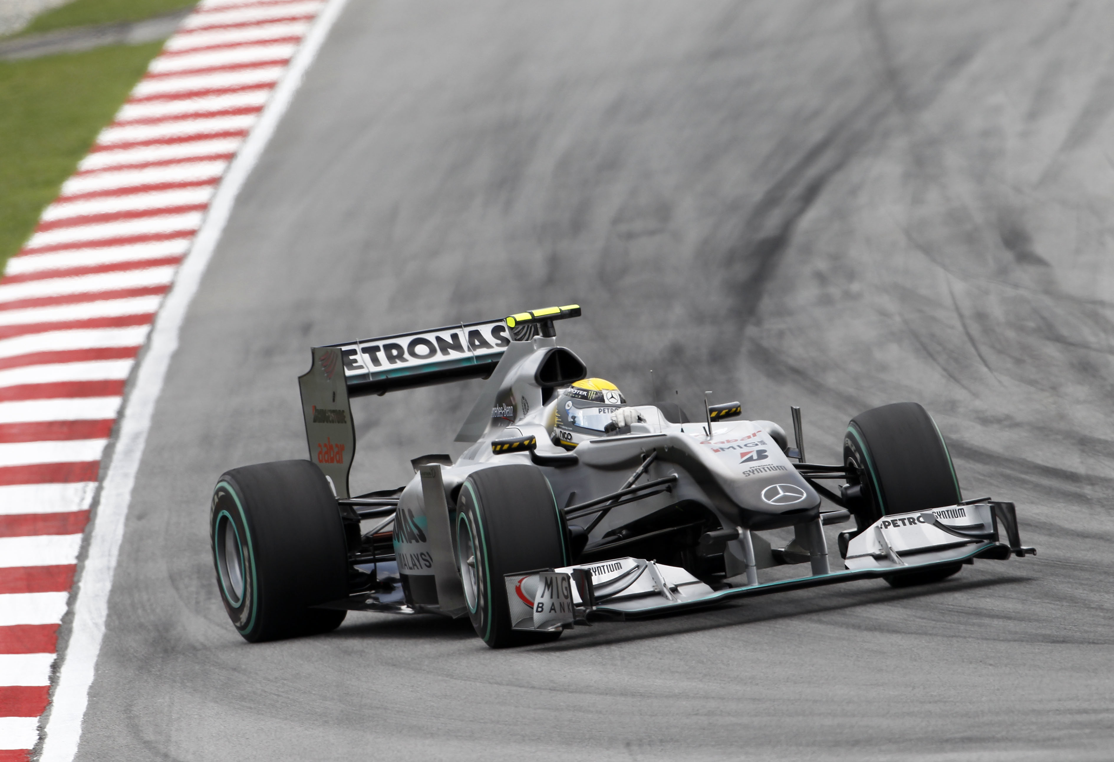 - Großer Preis von Malaysia in Sepang, 24. März 2013. In der Saison 2013 übernimmt Lewis Hamilton das Cockpit des Silberpfeils von Rekordweltmeister Michael Schumacher. Gleich beim zweiten Rennen gelingt Hamilton auf dem neuen Mercedes F1 W04 eine Podiumsplatzierung. Malaysian Grand Prix in Sepang, 24 March 2013. In the 2013 season, Lewis Hamilton takes over the cockpit of the Silver Arrow from record world champion Michael Schumacher. In the new Mercedes F1 W04, Hamilton achieves a podium position in the second race.