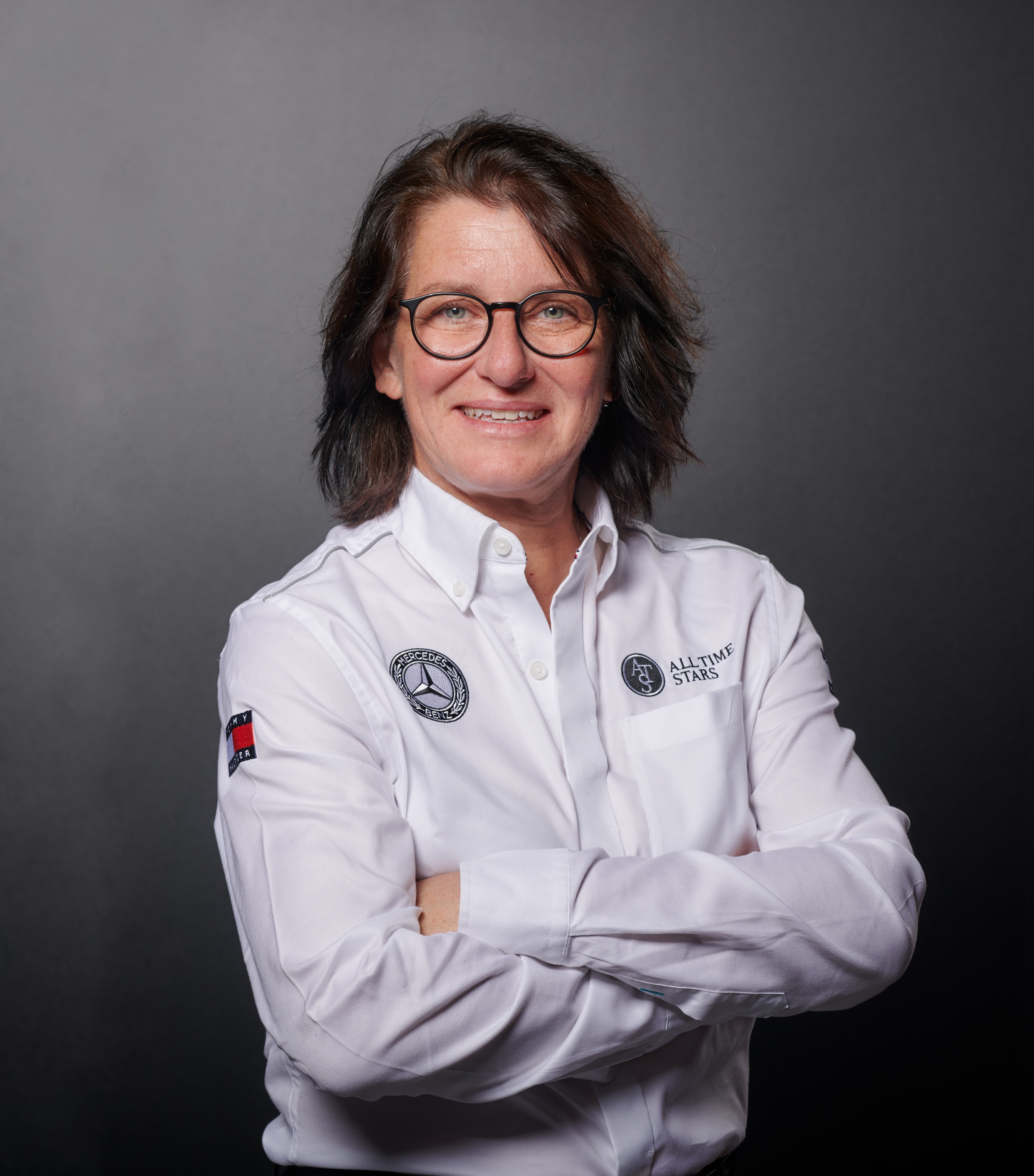 - Testfahrt in Zolder, 1994. Ellen Lohr (Startnummer 8) mit einem AMG Mercedes C-Klasse Rennsport-Tourenwagen. Test drive at Zolder, 1994. Ellen Lohr (starting number 8) with an AMG Mercedes C-Class racing touring car.