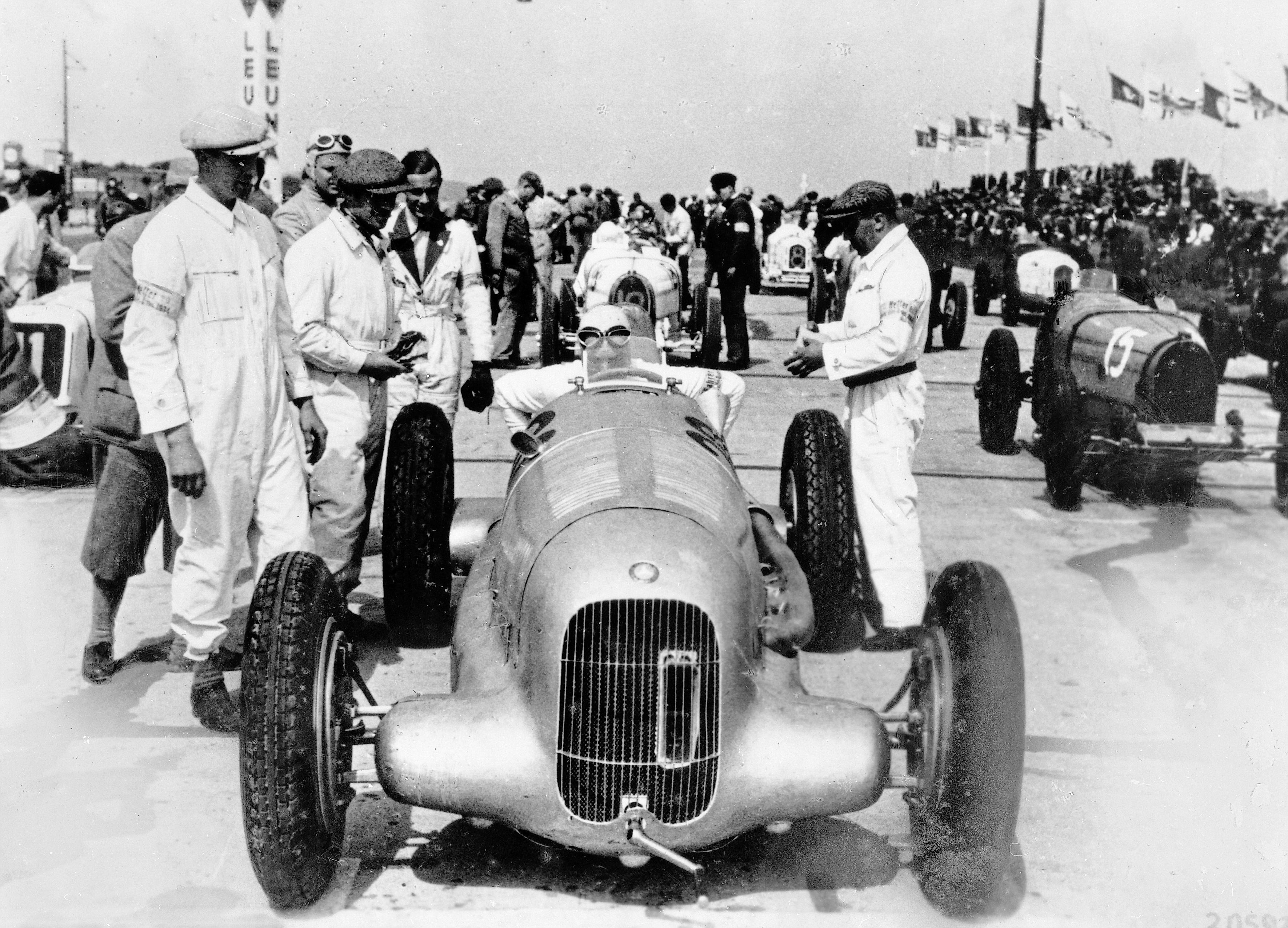 - Monaco Grand Prix, 22 April 1935, starting preparations. Three Mercedes-Benz W 25 formula racing cars on the front row of the grid. Starting number 4 – Luigi Fagioli, the winner of the race. Starting number 6 – Manfred von Brauchitsch. Starting number 2 – Rudolf Caracciola.. Start of the Monaco Grand Prix, April 22, 1935. Threei Mercedes-Benz formula racing cars W 25 in the startin line. start number 4 – Luigi Fagioli, the winner. start number 6 – Manfred von Brauchitsch. start number 2 – Rudolf Caracciola.