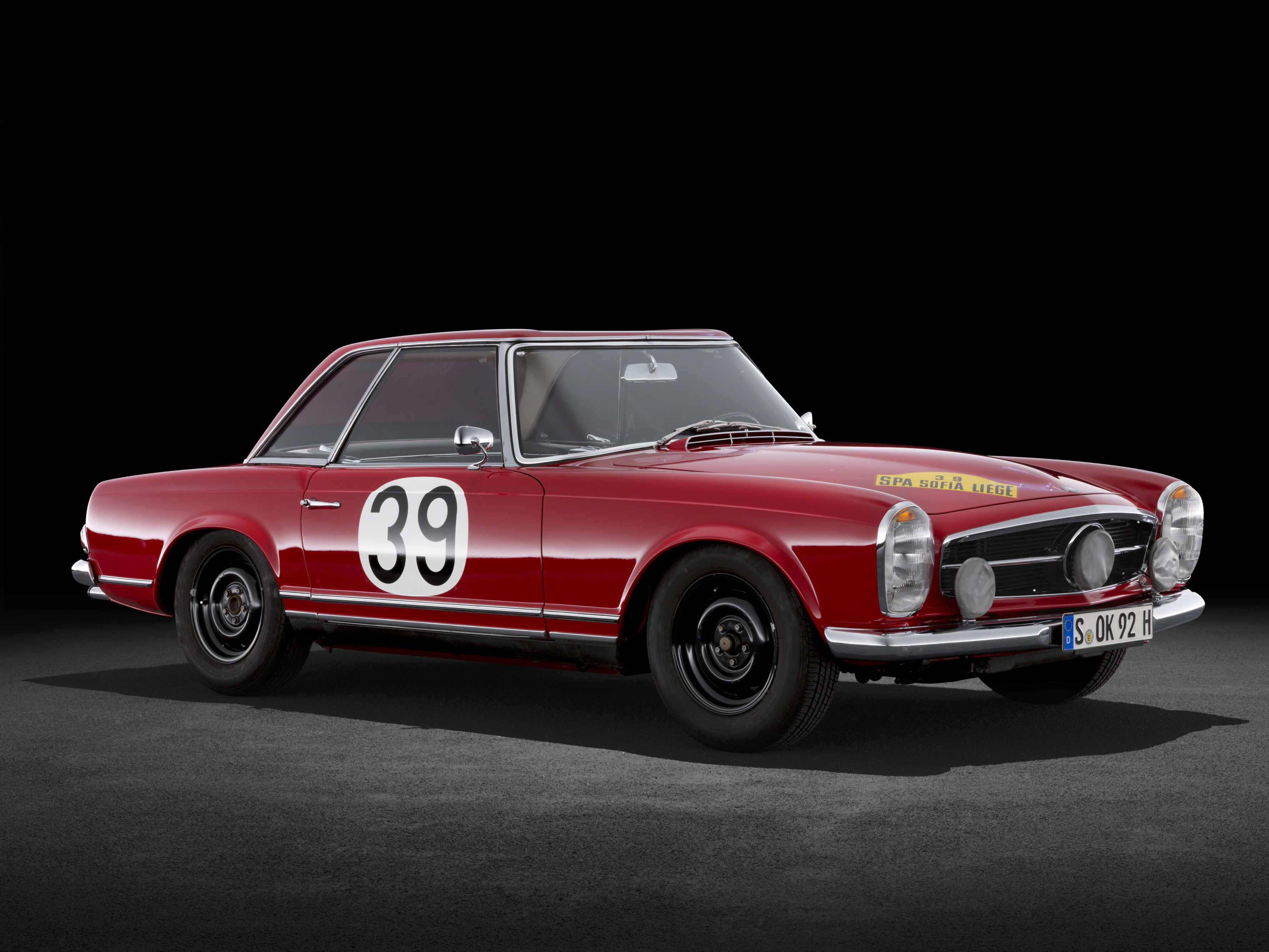 - Mercedes-Benz 230 SL „Pagode“ (W 113), 1963. Rallye-Fahrzeug. Studioaufnahme, von links vorn. Mercedes-Benz 230 SL “Pagoda” (W 113) rally car, 1963. Studio shot, exterior, from front left.