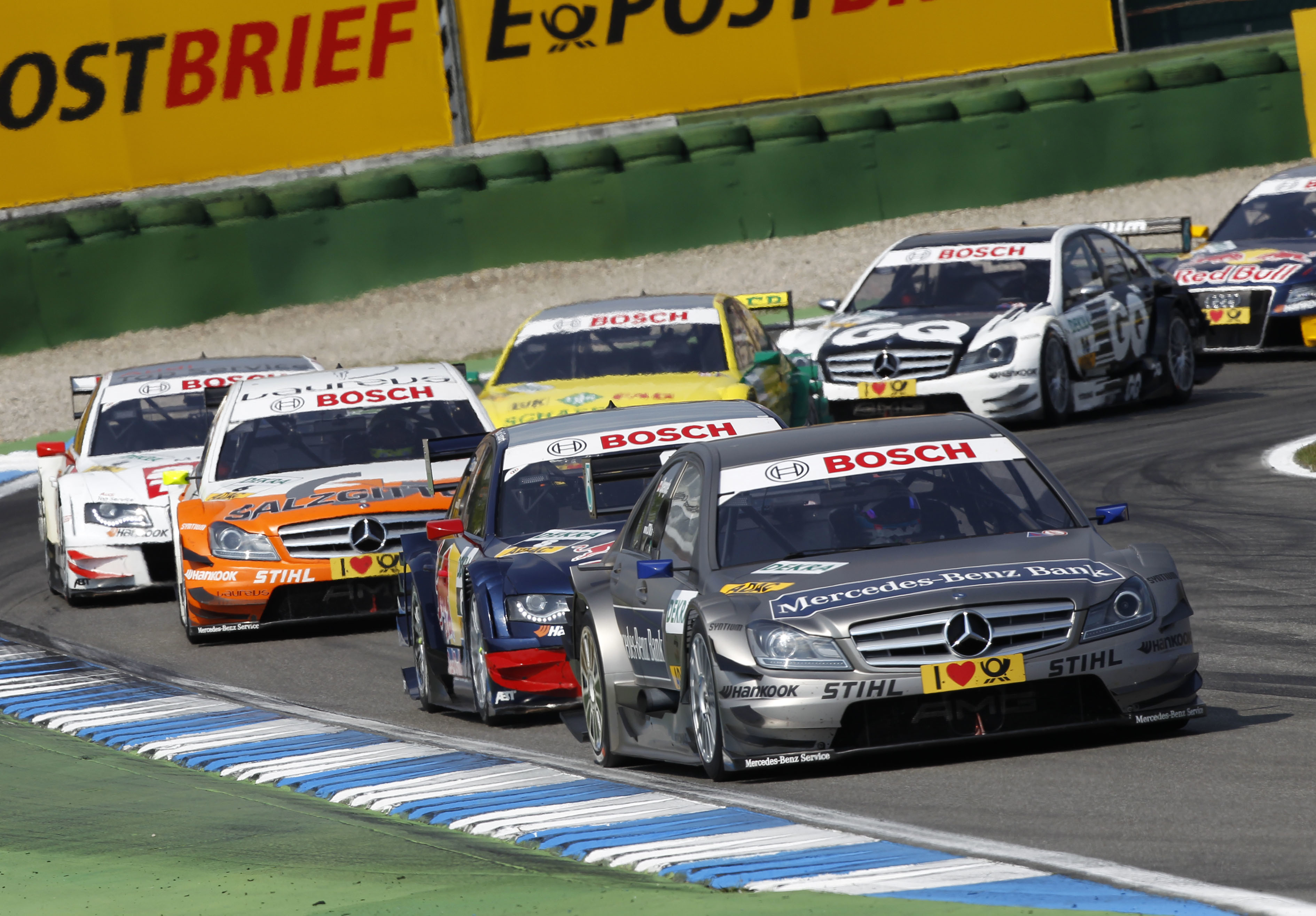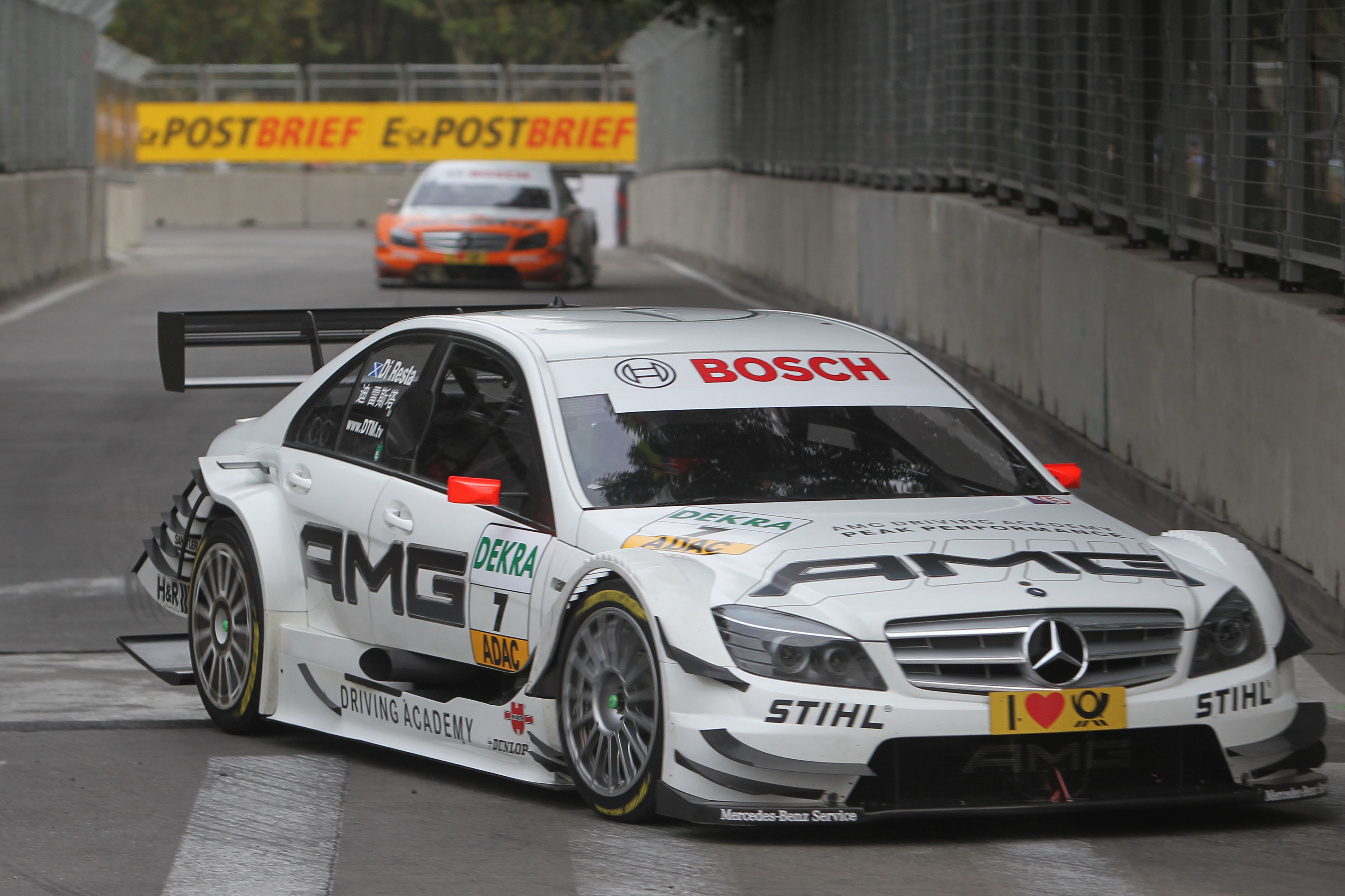 - DTM-Auftaktrennen auf dem Hockenheimring, 1. Mai 2011: Bruno Spengler auf Mercedes-Benz Bank AMG-Mercedes C-Klasse DTM-Tourenwagen (W 204), gewinnt den ersten Lauf der DTM-Saison 2011 und belegt am Ende Platz drei der Fahrerwertung. DTM season opener at the Hockenheimring, 1 May 2011: Bruno Spengler in a Mercedes-Benz Bank AMG-Mercedes C-Class DTM touring car (W 204) wins the first race of the 2011 DTM season and finishes third in the drivers’ rating.