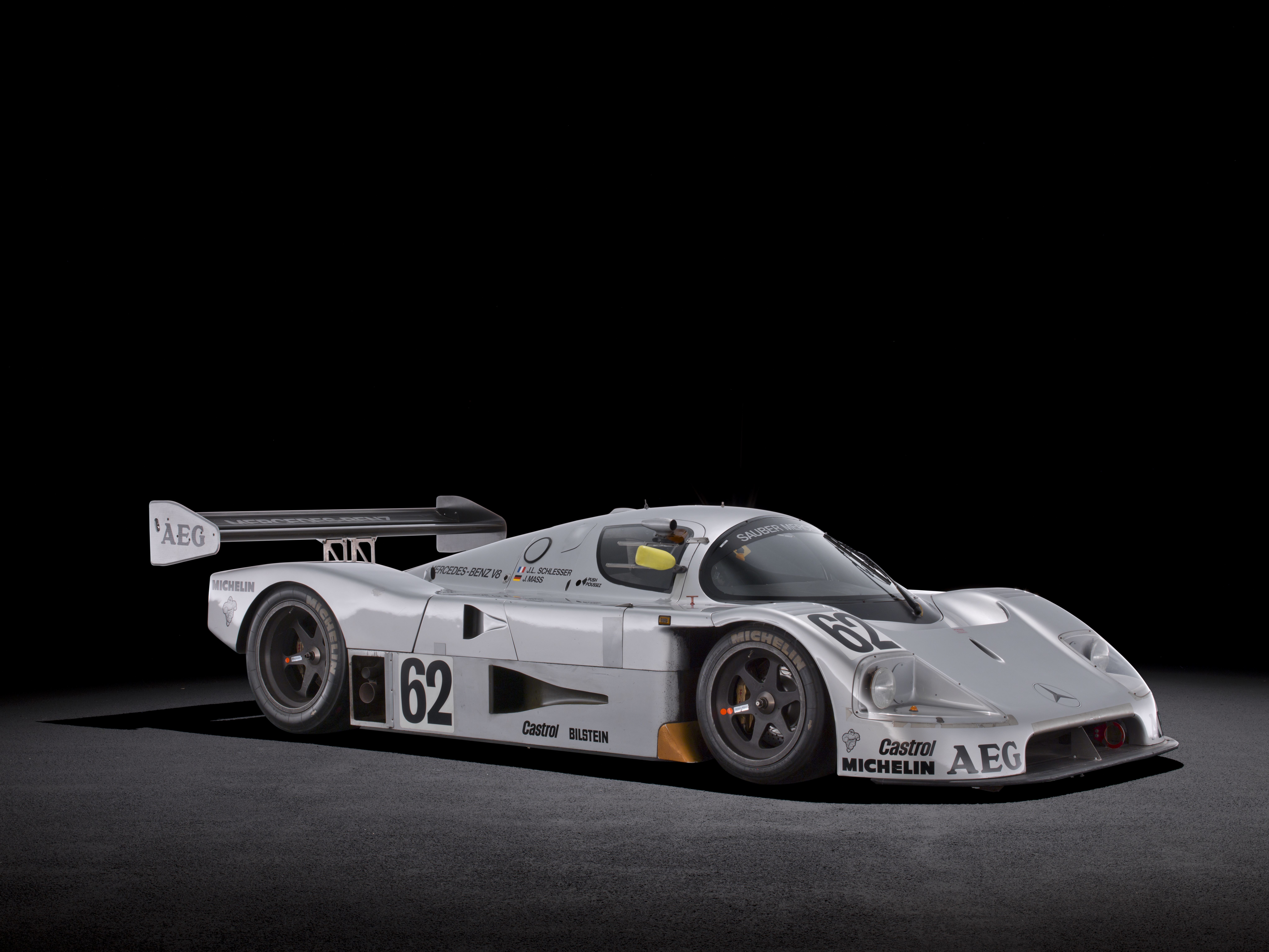 - Mercedes-Benz C 11 Gruppe-C-Rennsportwagen, 1990. Siegerfahrzeug von Jochen Mass und Karl Wendlinger im 480-Kilometer-Rennen von Spa-Francorchamps am 3. Juni 1990. Studioaufnahme, Exterieur, von links vorn. Mercedes-Benz C 11 Group C sports car, 1990. Jochen Mass and Karl Wendlinger’s winning car in the 480-kilometre race at Spa-Francorchamps on 3 June 1990. Studio shot, exterior, from front left.