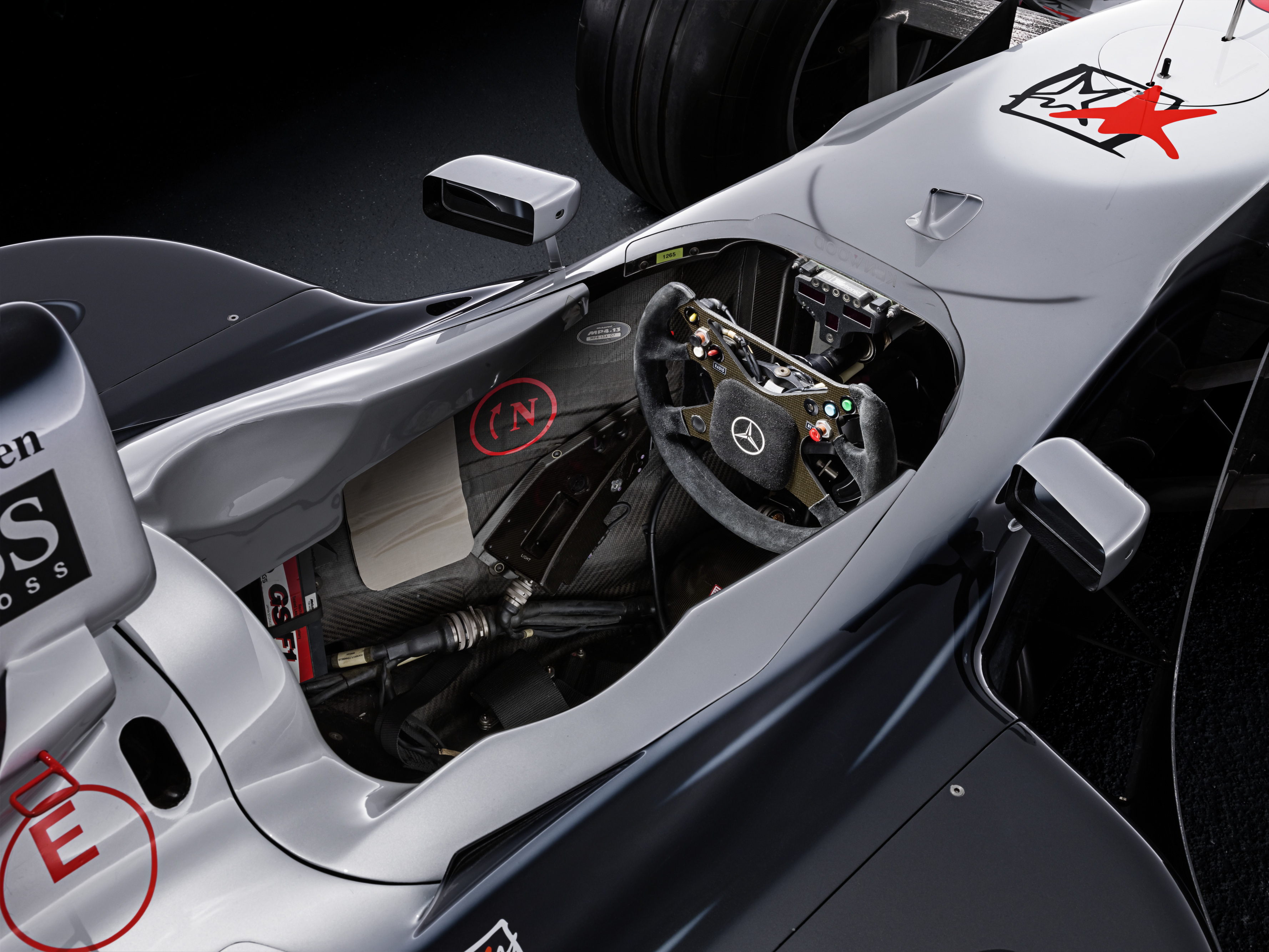 - Mercedes-Benz Formel-1-Rennwagen W 196 R mit freistehenden Rädern, 1955. Perspektive ins Cockpit. Mercedes-Benz Formula 1 racing car W 196 R with exposed wheels, 1955. View into the cockpit.