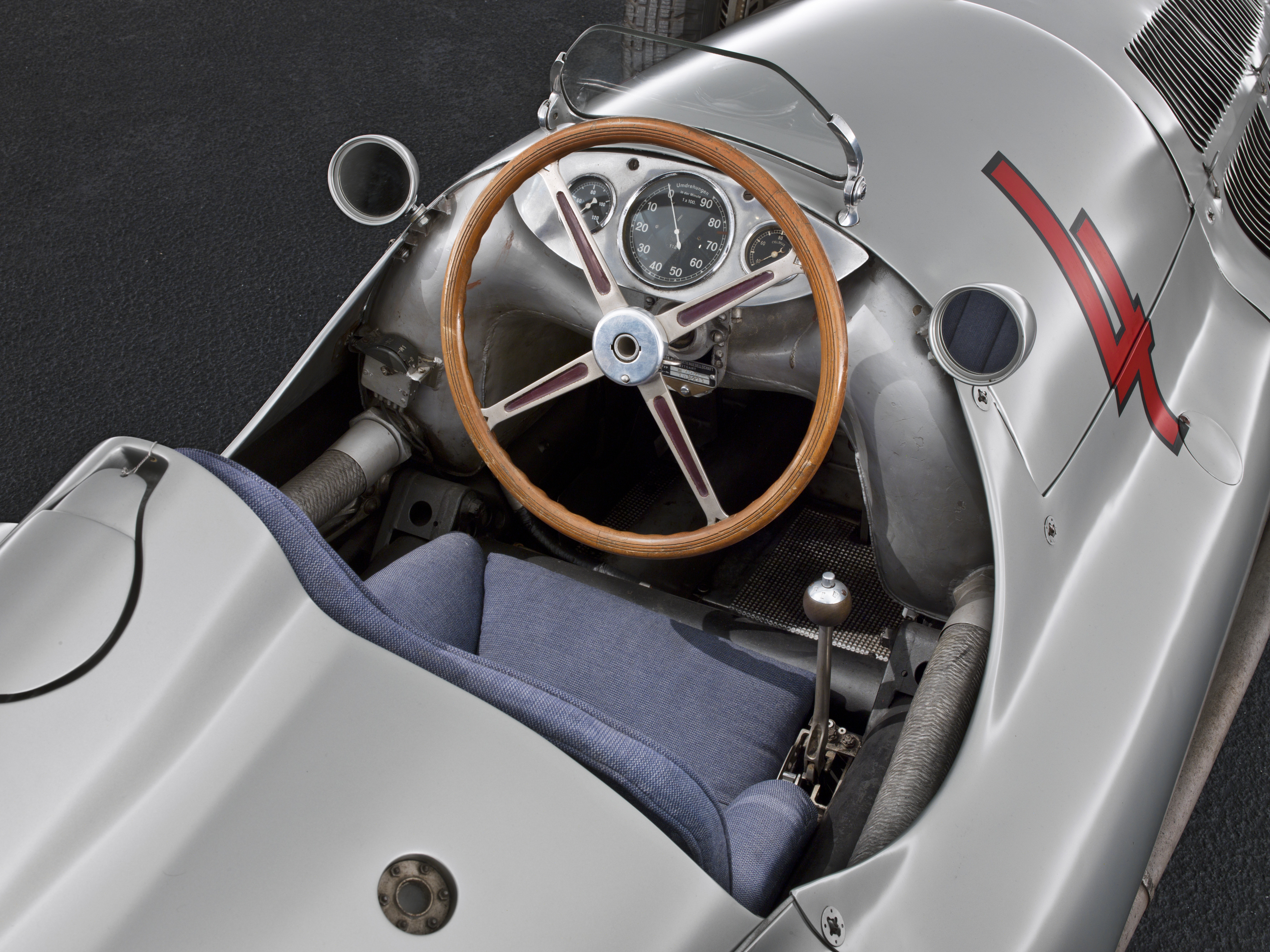 - Mercedes-Benz 1,5-Liter-Formel-Rennwagen W 165, 1939. Perspektive ins Cockpit. Mercedes-Benz 1.5-litre formula racing car W 165, 1939. View into the cockpit.
