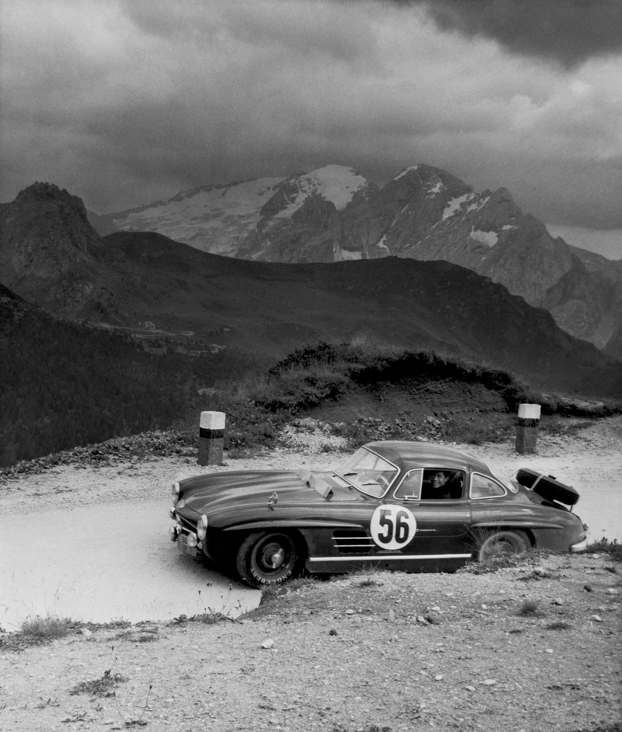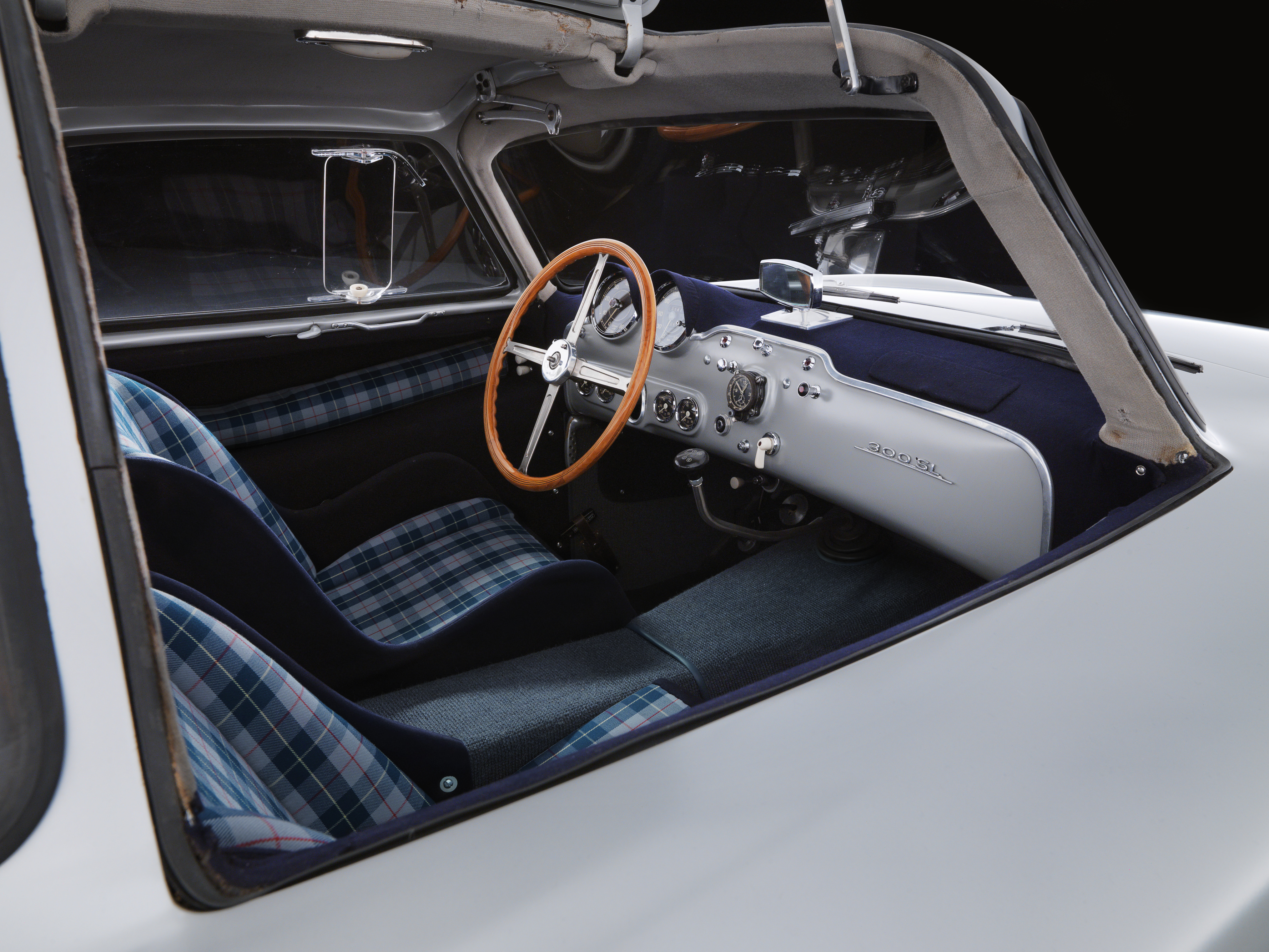 - Mercedes-Benz 300 SL „Gullwing“ (W 198), 1955. Auf dem 300 SL „Gullwing“ mit der Startnummer 417 (Startzeit 4:17 Uhr) siegen John Cooper Fitch und Kurt Gessl bei der Mille Miglia 1955 in der Klasse der GT über 1,3 Liter Hubraum und belegen den fünften Platz im Gesamtklassement. Perspektive ins Cockpit. Mercedes-Benz 300 SL “Gullwing” (W 198), 1955. John Cooper Fitch and Kurt Gessl win the Mille Miglia 1955 in the GT class over 1.3 litres in the 300 SL “Gullwing”, starting number 417 (start time 4:17 a.m.) and take fifth place in the overall classification. View into the cockpit.