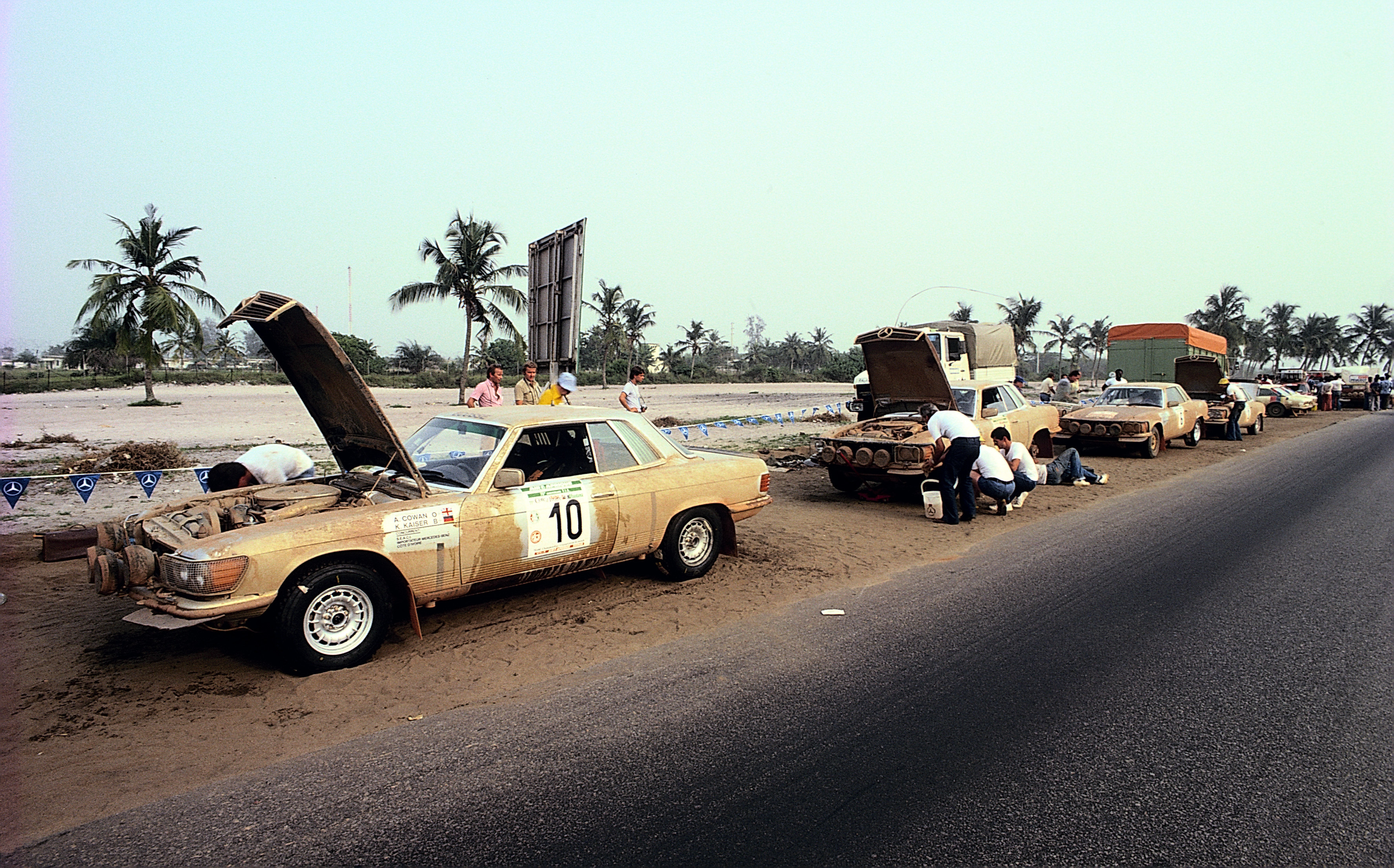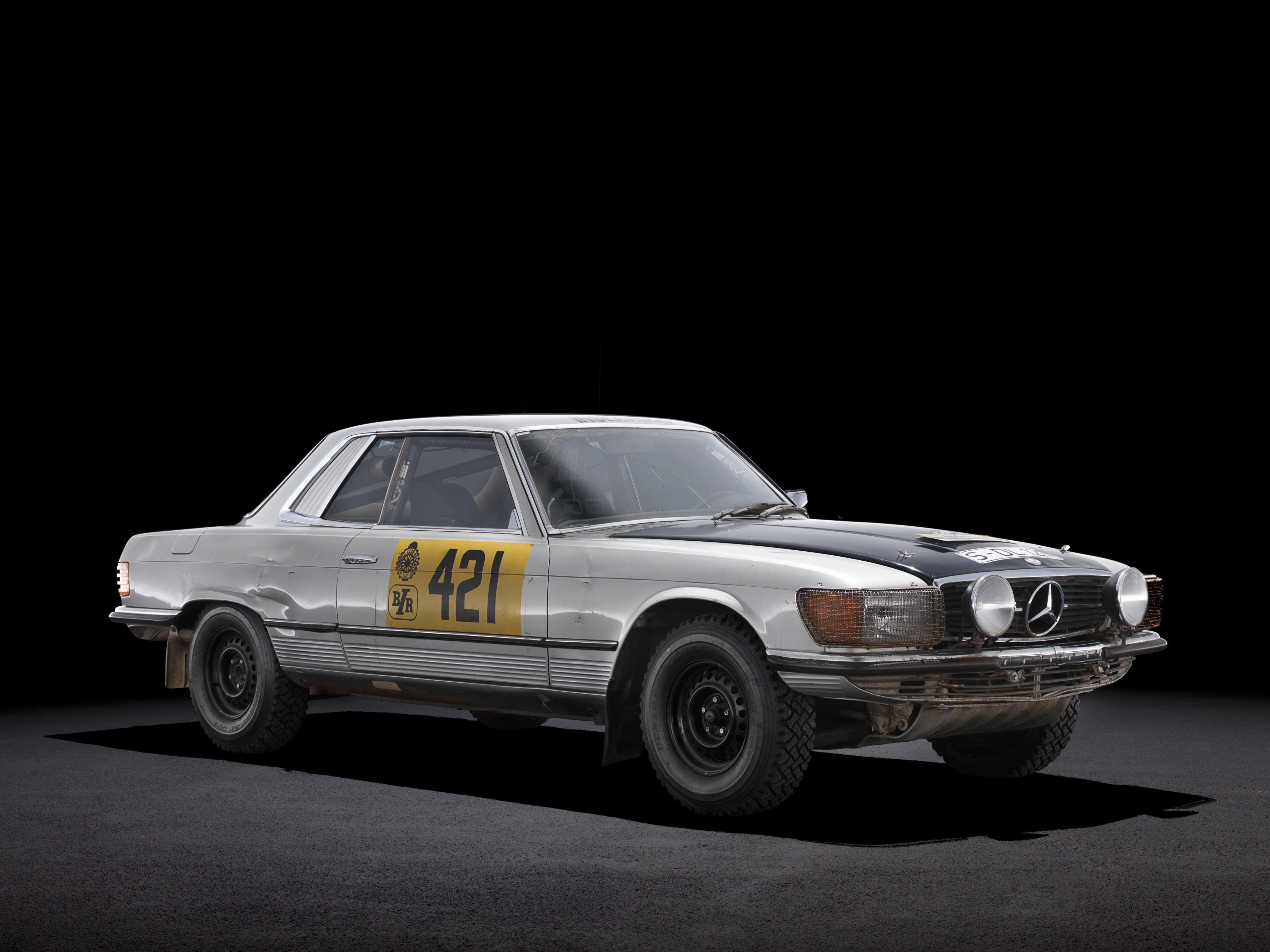 - Mercedes-Benz 450 SLC (C 107), 1978. Rallye-Fahrzeug mit der Startnummer 421 der Rallye Vuelta a la América del Sud 1978, Fahrzeug des Siegerteams Andrew Cowan/Colin Malkin. Perspektive ins Cockpit. Mercedes-Benz 450 SLC (C 107), 1978. Rally vehicle, starting number 421, in the 1978 Vuelta a la América del Sud Rally, vehicle driven by the winning team Andrew Cowan/Colin Malkin. View into the cockpit.