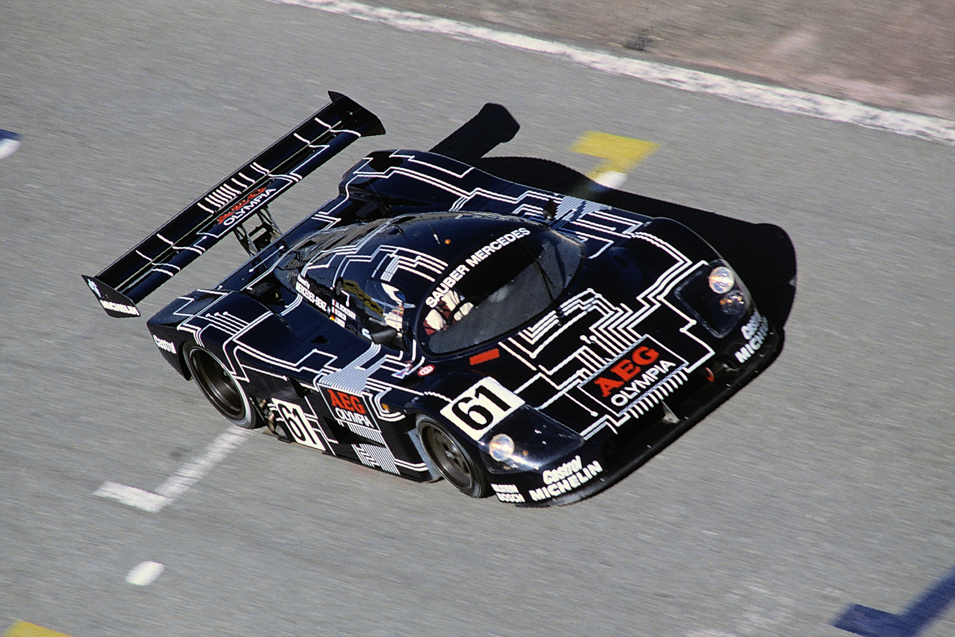 - Sauber-Mercedes C 9 Gruppe-C-Rennsportwagen, 1989. Siegerfahrzeug von Jean-Louis Schlesser und Jochen Mass im 480-Kilometer-Rennen in Jarama, 25. Juni 1989. Studioaufnahme, Exterieur, von links vorn. Sauber-Mercedes C 9 Group C sports car, 1989. Winning car driven by Jean-Louis Schlesser and Jochen Mass in the 480 kilometre race in Jarama, 25 June 1989. Studio shot, exterior, from front left.
