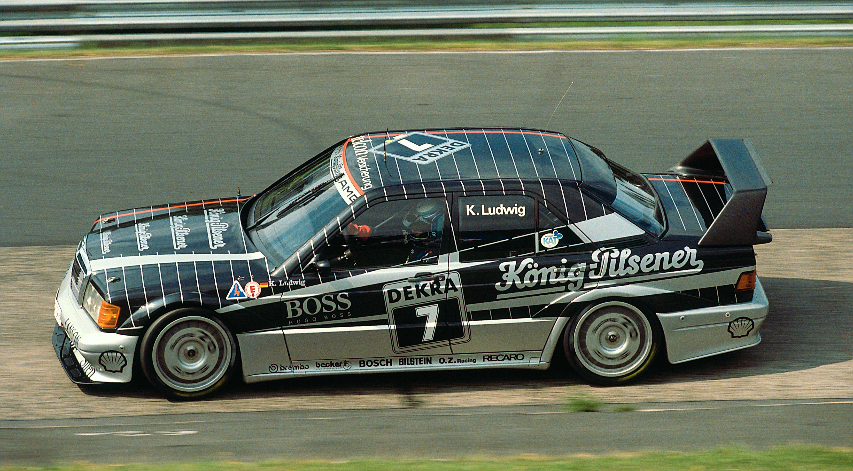 - Großer Preis der Tourenwagen auf dem Nürburgring, 3. September 1990. Klaus Ludwig (Startnummer 7) mit einem Mercedes-Benz DTM-Tourenwagen 190 E 2.5-16 Evolution II (W 201). Touring Car Grand Prix at Nürburgring, 3 September 1990. Klaus Ludwig (starting number 7) in the Mercedes AMG 190 E 2.5-16 Evolution II (W 201) touring car.