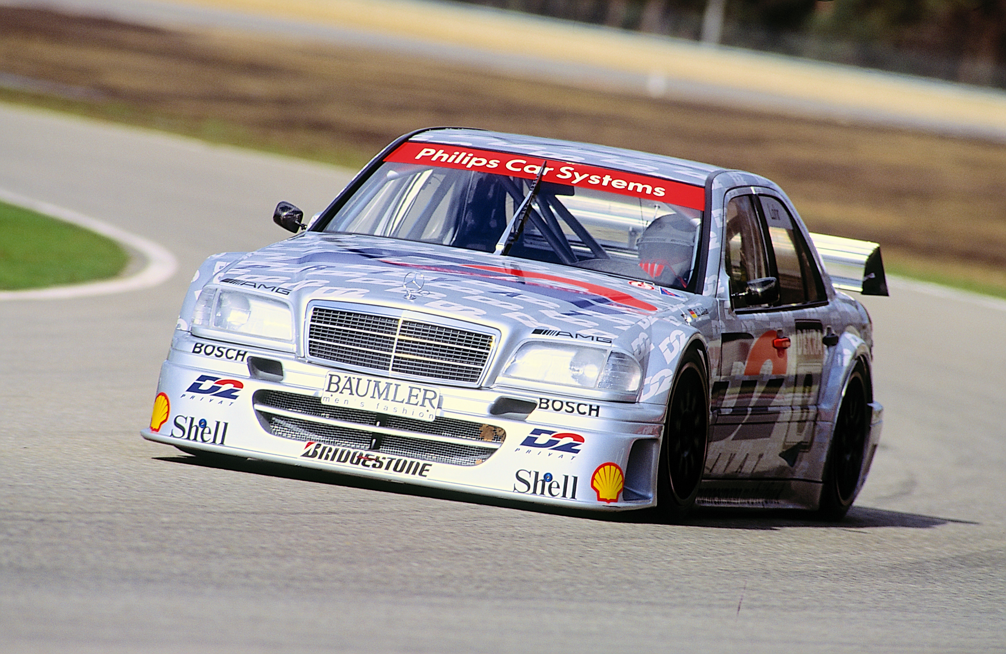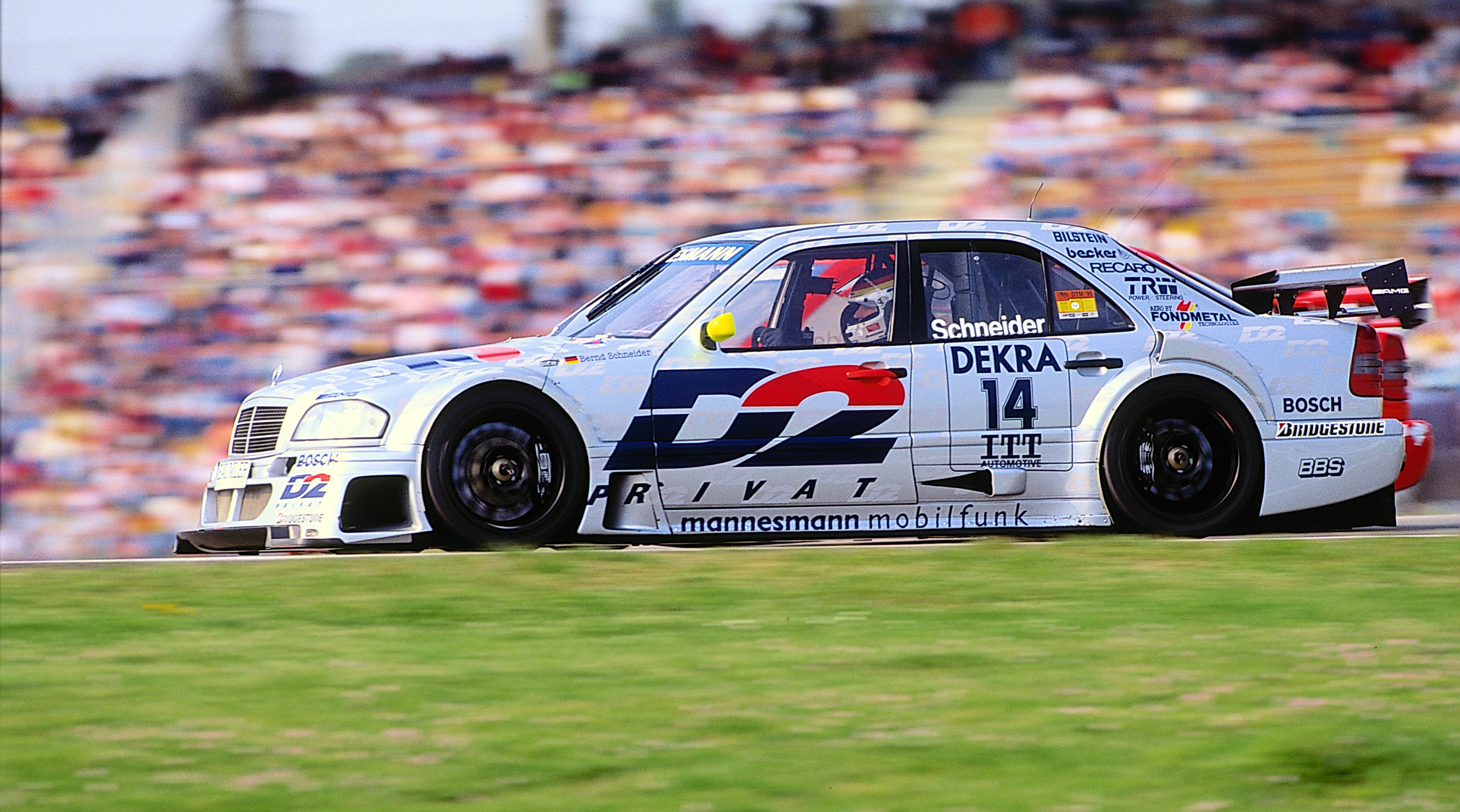 - Rennsport-Festival auf dem Hockenheimring, 23. April 1995. Bernd Schneider (Startnummer 14) gewinnt das Auftaktrennen der DTM-Saison 1995 im ersten und zweiten Lauf mit einem AMG Mercedes C-Klasse Rennsport-Tourenwagen (W 202). Am Ende der Saison ist Schneider Gewinner der DTM und der ITC. Bis 2006 erzielt er vier weitere Fahrertitel in der DTM. Motorsport festival at Hockenheimring, 23 April 1995. Bernd Schneider (starting number 14) wins the opening race of the 1995 DTM season in the first and second heats with an AMG Mercedes C-Class racing touring car (W 202). At the end of the season, Schneider is the winner of the DTM and the ITC. By 2006, he clinches four more driver titles in the DTM.
