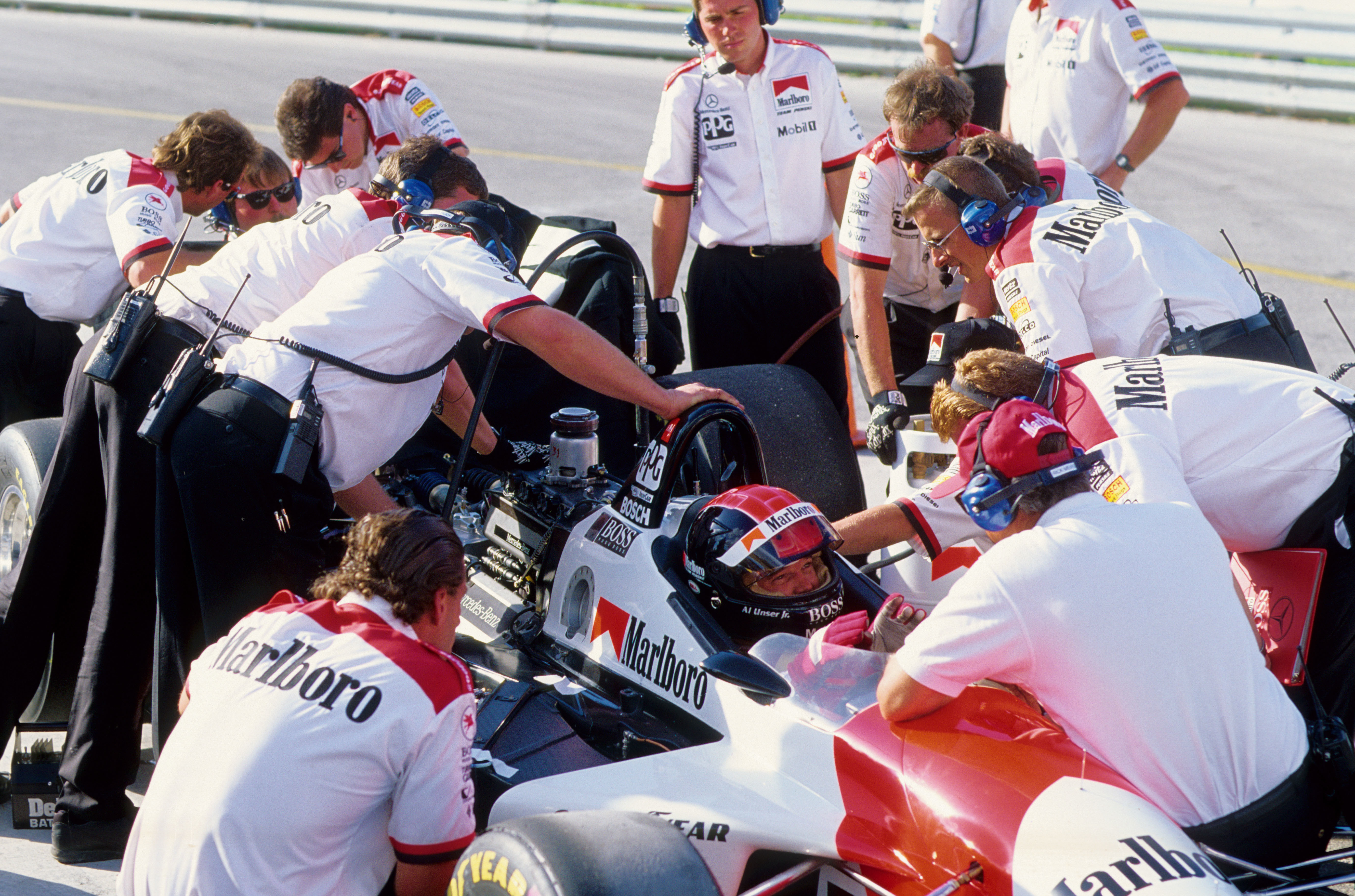 - Abenteuer in Amerika: Das Team Penske Mercedes fährt mit Stuttgarter Technik erfolgreich in der IndyCar Series. Am Steuer des Penske PC-23 mit Ilmor-Mercedes-Benz Motor sitzt Al Unser Jr., der 1994 die IndyCar World Series gewinnt. American adventure: the Penske Mercedes team, powered by engineering from Stuttgart, is successful in the IndyCar Series. At the wheel of the Penske PC-23 with an Ilmor-Mercedes-Benz engine is Al Unser Jr., winner of the 1994 IndyCar World Series.