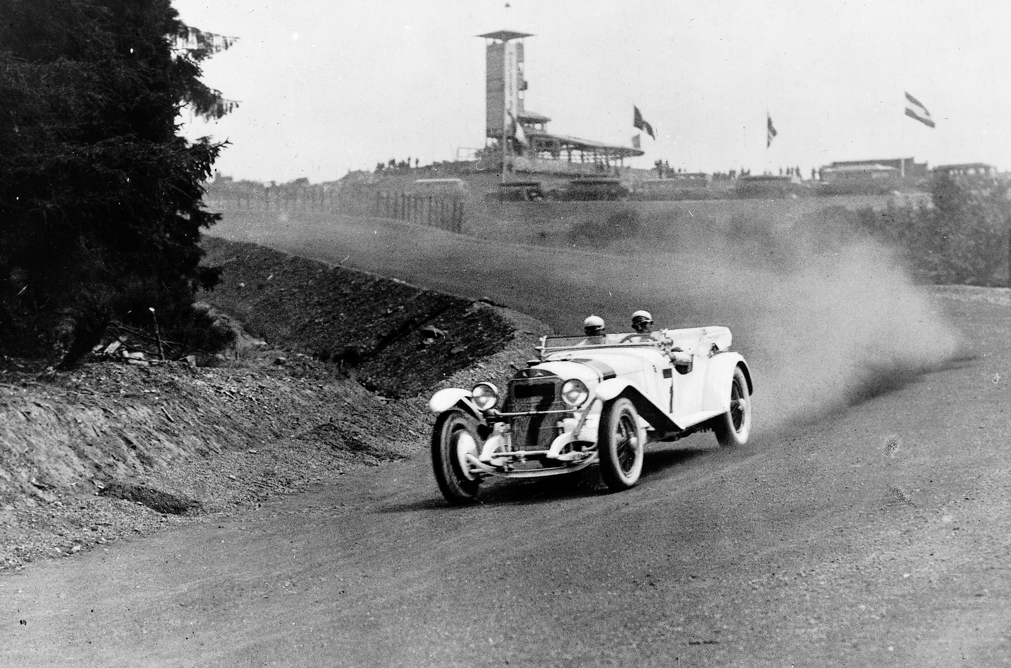 - Großer Preis von Deutschland für Sportwagen auf dem Nürburgring, 17. Juli 1927. Christian Werner (Startnummer 7) mit einem Mercedes-Benz Typ S. Werner fährt die schnellste Runde und belegt im Ergebnis den zweiten Platz in der Klasse der Sportwagen über 3 Liter Hubraum. German Grand Prix for sports cars at Nürburgring, 17 July 1927. Christian Werner (starting number 7) in a Mercedes-Benz Model S. Werner drove the fastest lap and finally achieved 2nd place in the category for sports cars of over 3 litres.