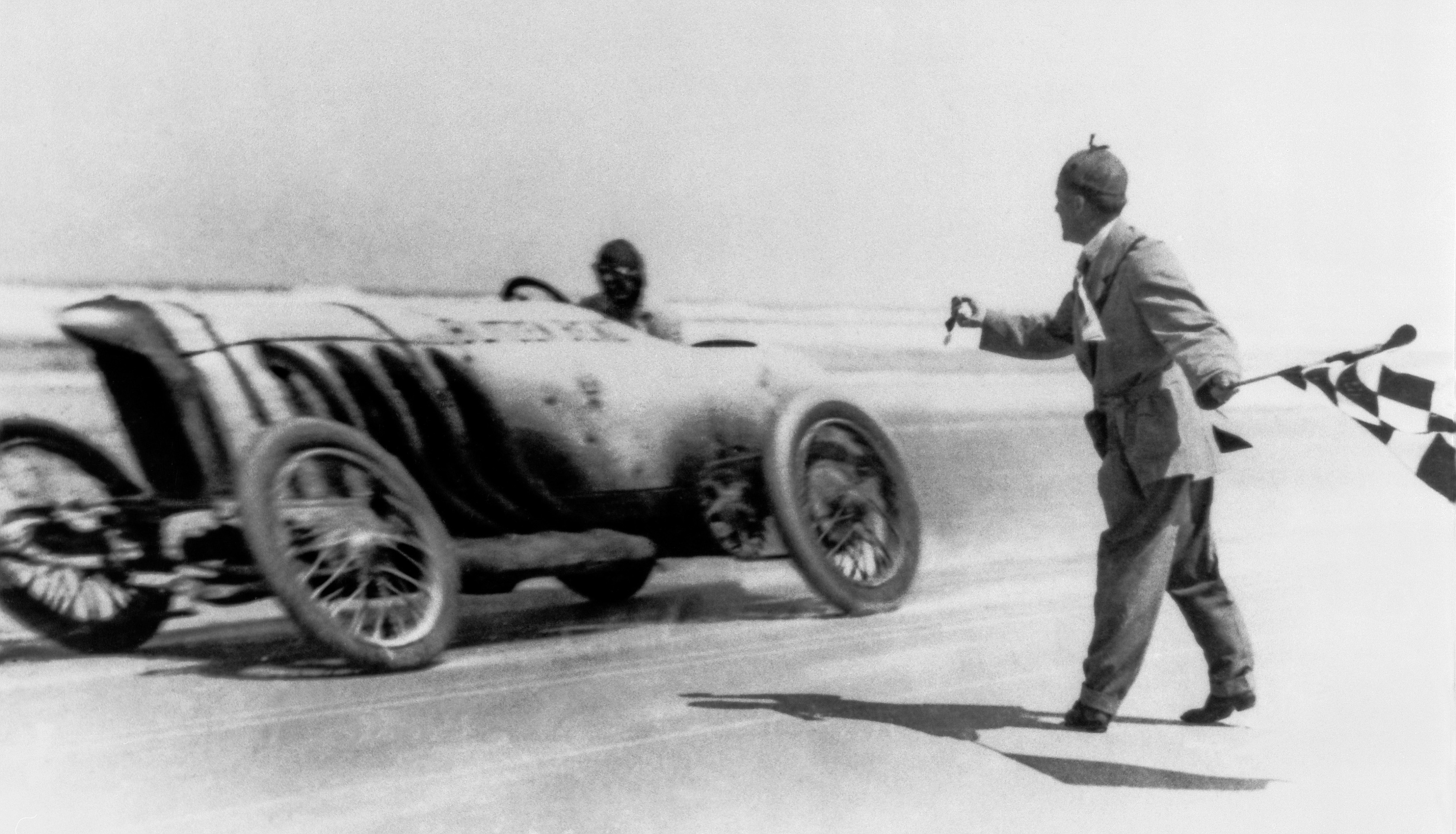 Daytona Beach,23. April 1911. Bob Burman verbessert den Vorjahresrekord von Barney Oldfield und fährt in Daytona Beach/Florida/USA eine Meile bei fliegendem Start mit 228,1 km/h. Sein Weltrekord bleibt bis 1919 ungeschlagen.
