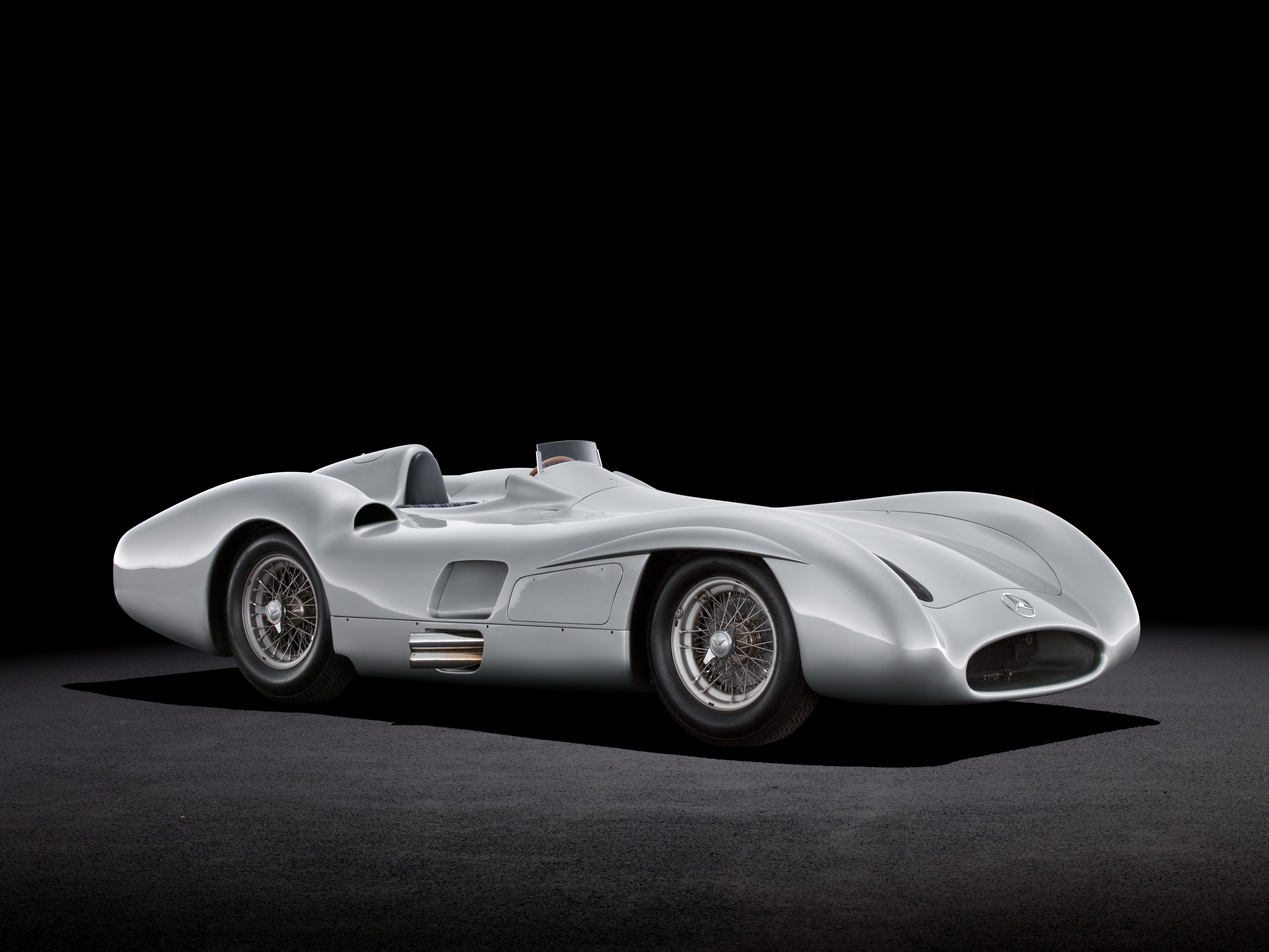 - Mercedes-Benz 300 SLR Rennsportwagen (W 196 S), 1955. Studioaufnahme, Exterieur, von links vorn. Mercedes-Benz 300 SLR sports car (W 196 S), 1955. Studio shot, exterior, from front left.