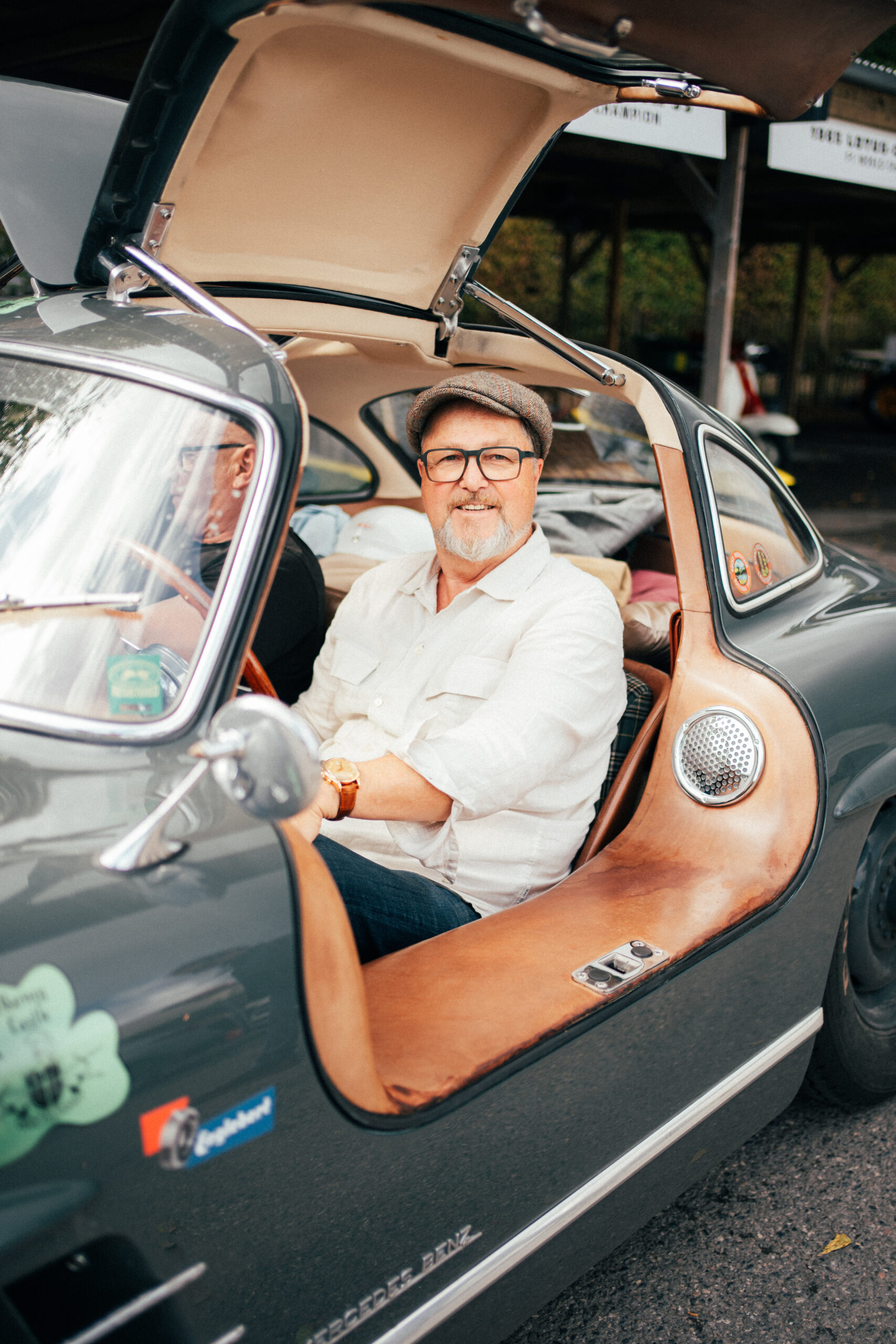 Die Reise beginnt, wie so oft, im bayerischen Polling. Unser 300 SL „Rennflügel“ wird auf Herz und Nieren geprüft: Jeder Schlauch, jede Schraube, jedes Gummi. Eigentlich war der Plan, das Fahrzeug auf dem Anhänger nach England zu bringen – sicher, bequem, logisch. Doch kurz vor der Abfahrt entscheiden wir uns um: Wenig Ersatzteile im Gepäck, das Auto straßenzugelassen – warum also nicht auf eigener Achse bis nach Dünkirchen? Ab dort geht’s dann doch auf den Anhänger, denn spätestens ab der Fähre wird’s zolltechnisch etwas komplex. Non-EU-Formalitäten und Logistik lassen grüßen.